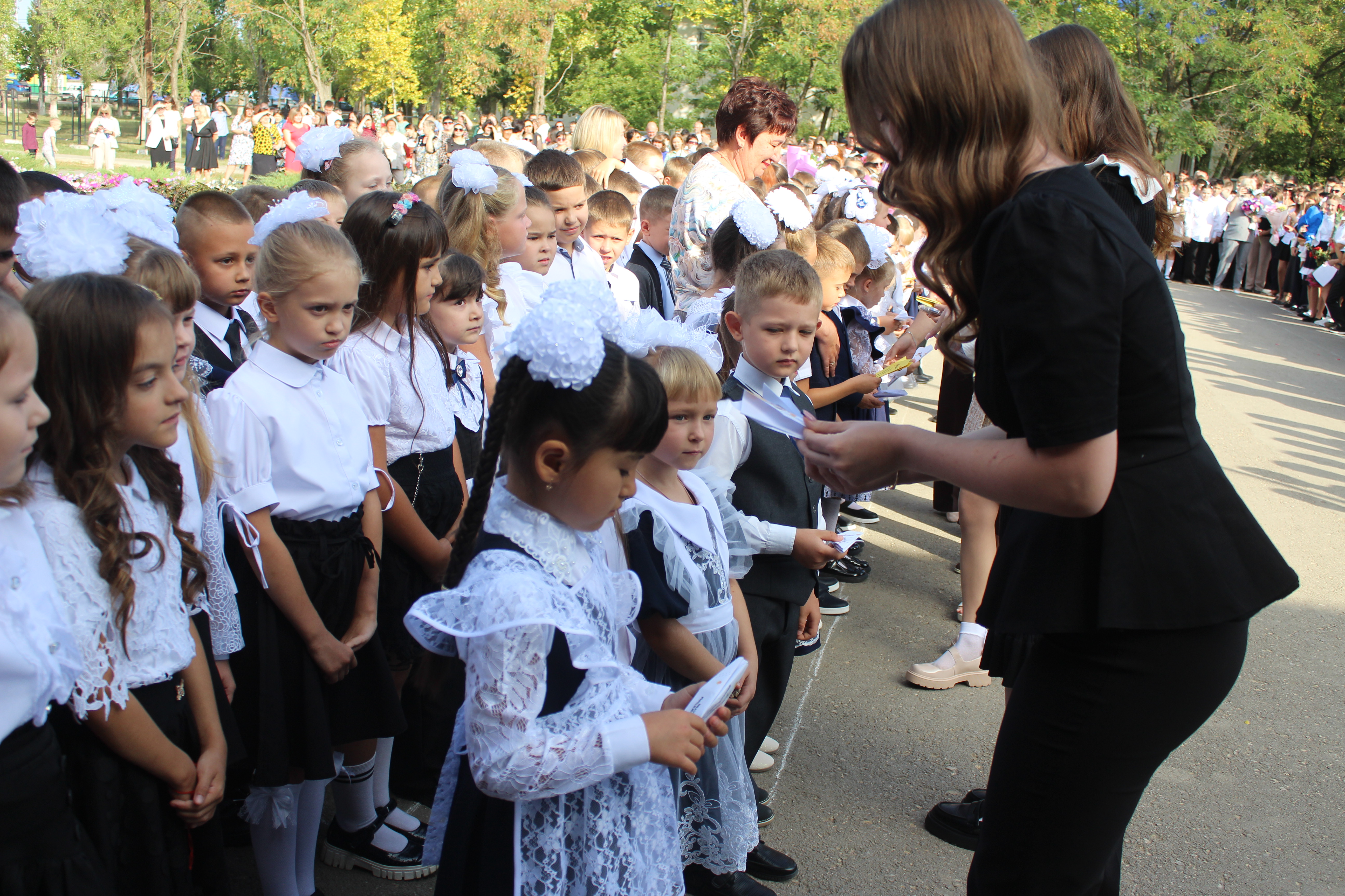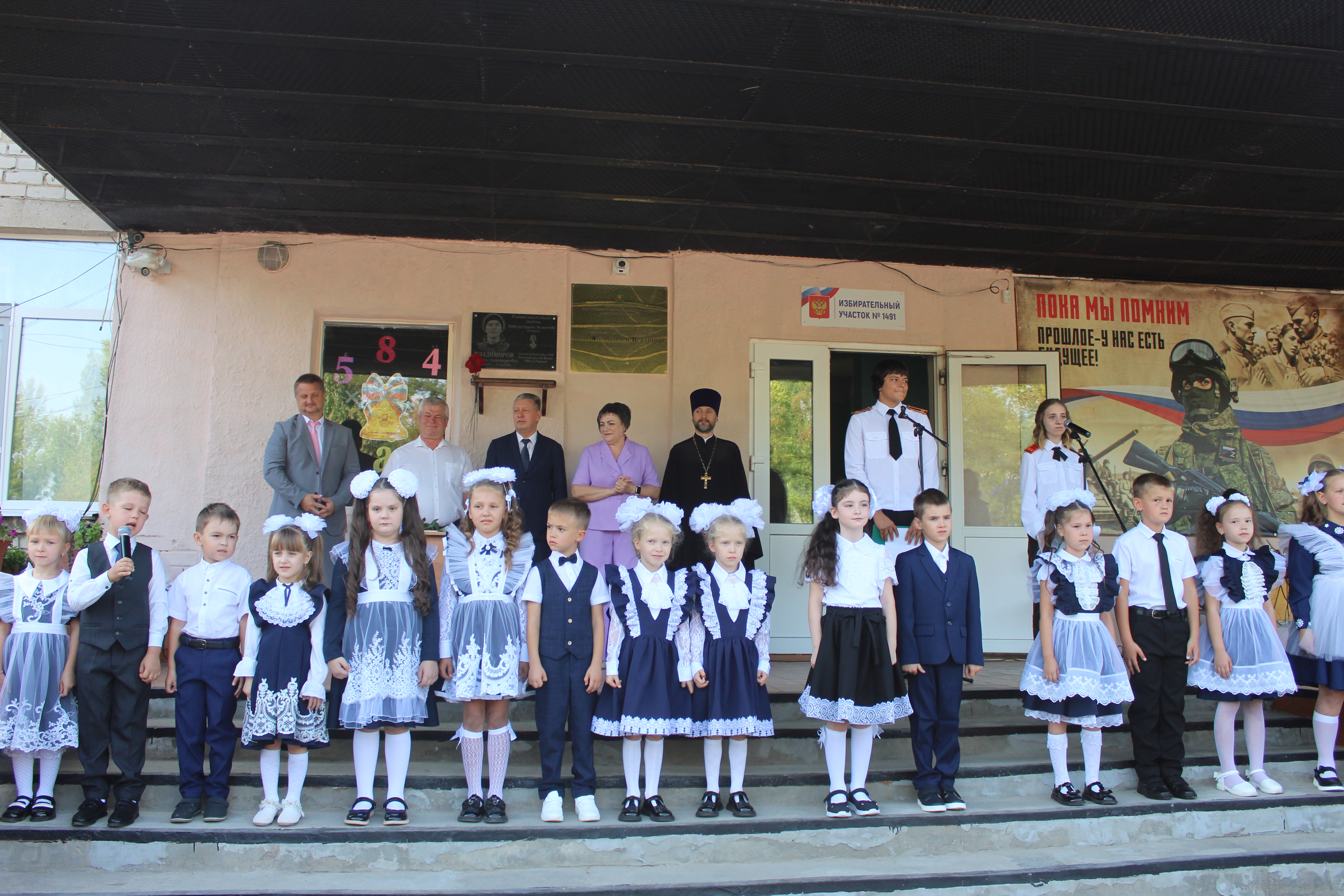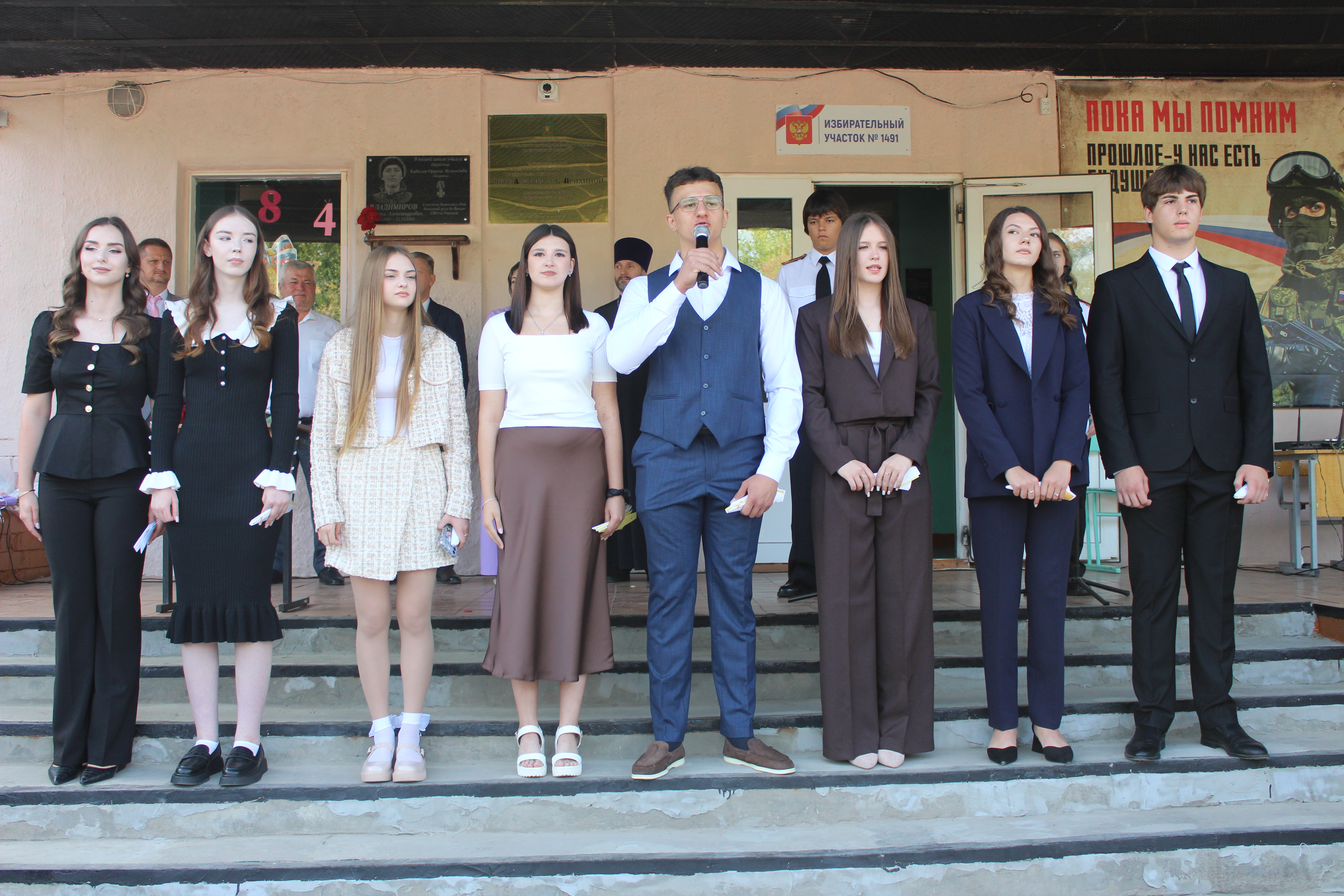 Школьный двор Мокроусской школы им. З.К. Пряхиной, еще вчера пустовавший, сегодня наполняется особой, торжественной и волнительной жизнью. Все ученики при параде: в форме, а девочки еще и с праздничными белыми бантами. Они стоят немного растерянные, но невероятно серьезные, понимая всю важность момента.