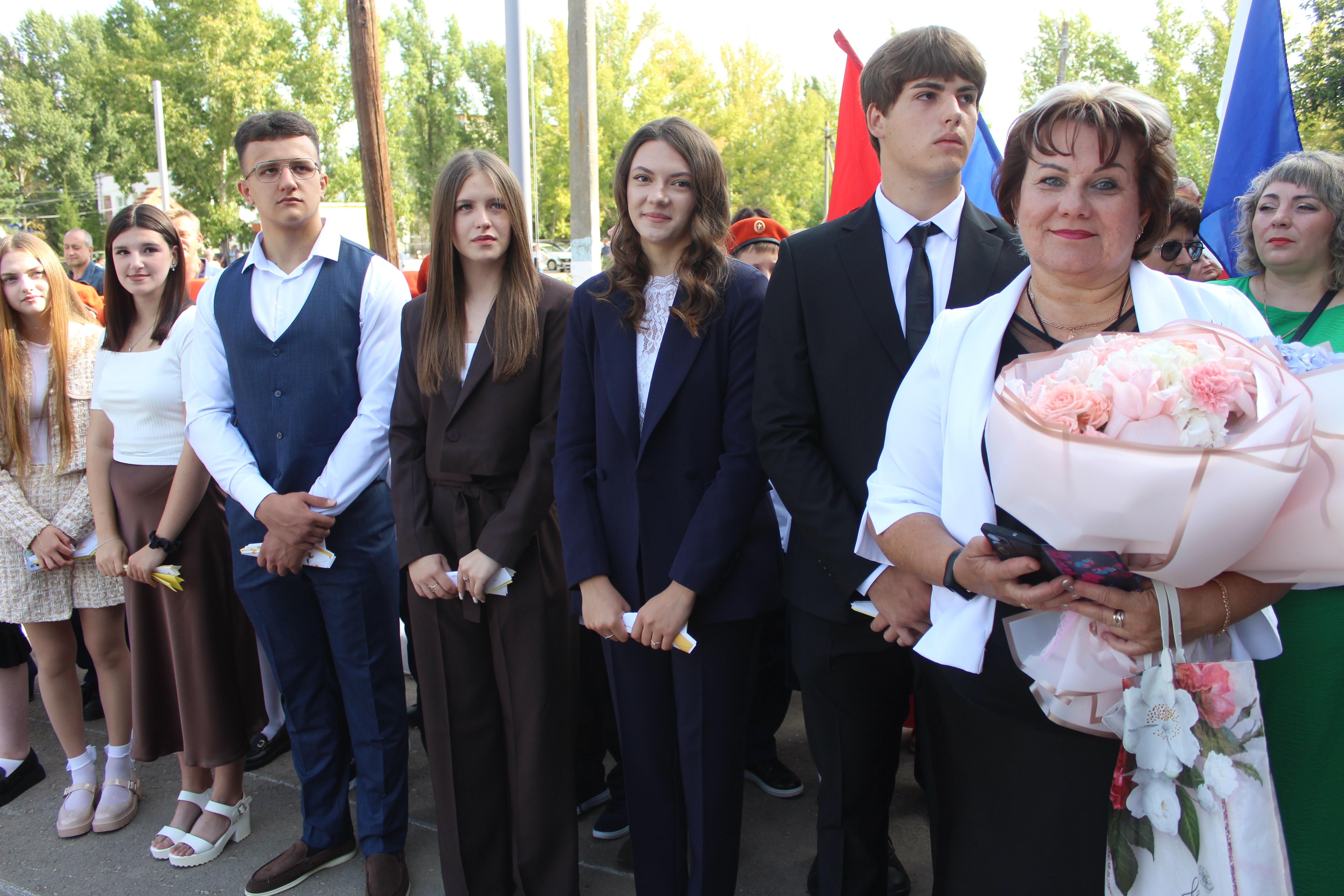 И вот настал момент, когда в школьном дворе зазвенел первый звонок в исполнении ученицы 1 класса Денизы Мамедовой и будущего выпускника 11 класса Владислава Полулях. После линейки ребята отправились в учебные классы.