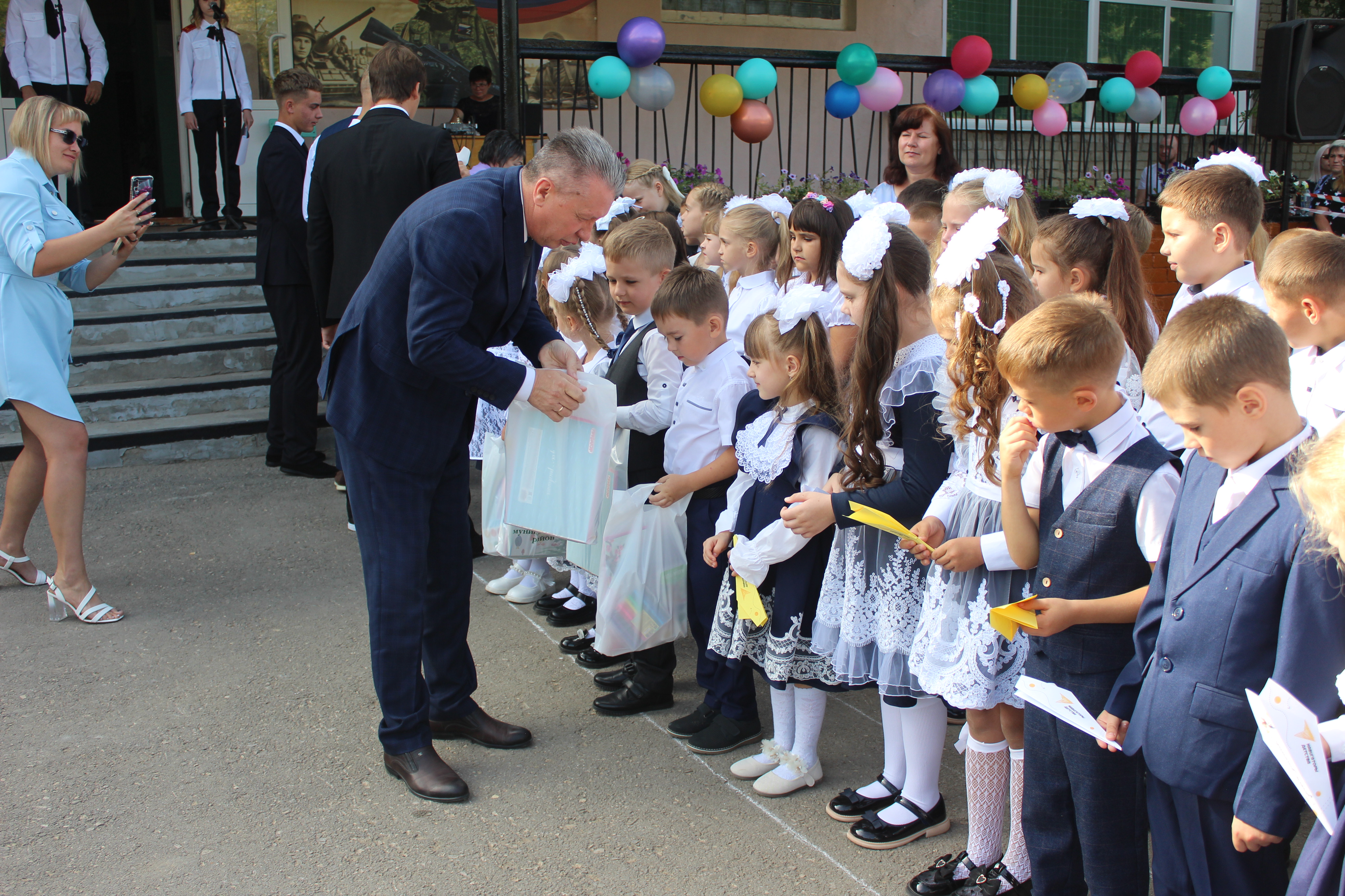 Прекрасные талантливые первоклассники подготовили и исполнили замечательные стихи. Одиннадцатиклассники дали свои напутствия первоклассникам и вручили самолетики будущего. Глава района А.В. Стрельников вручил подарки первоклассникам.