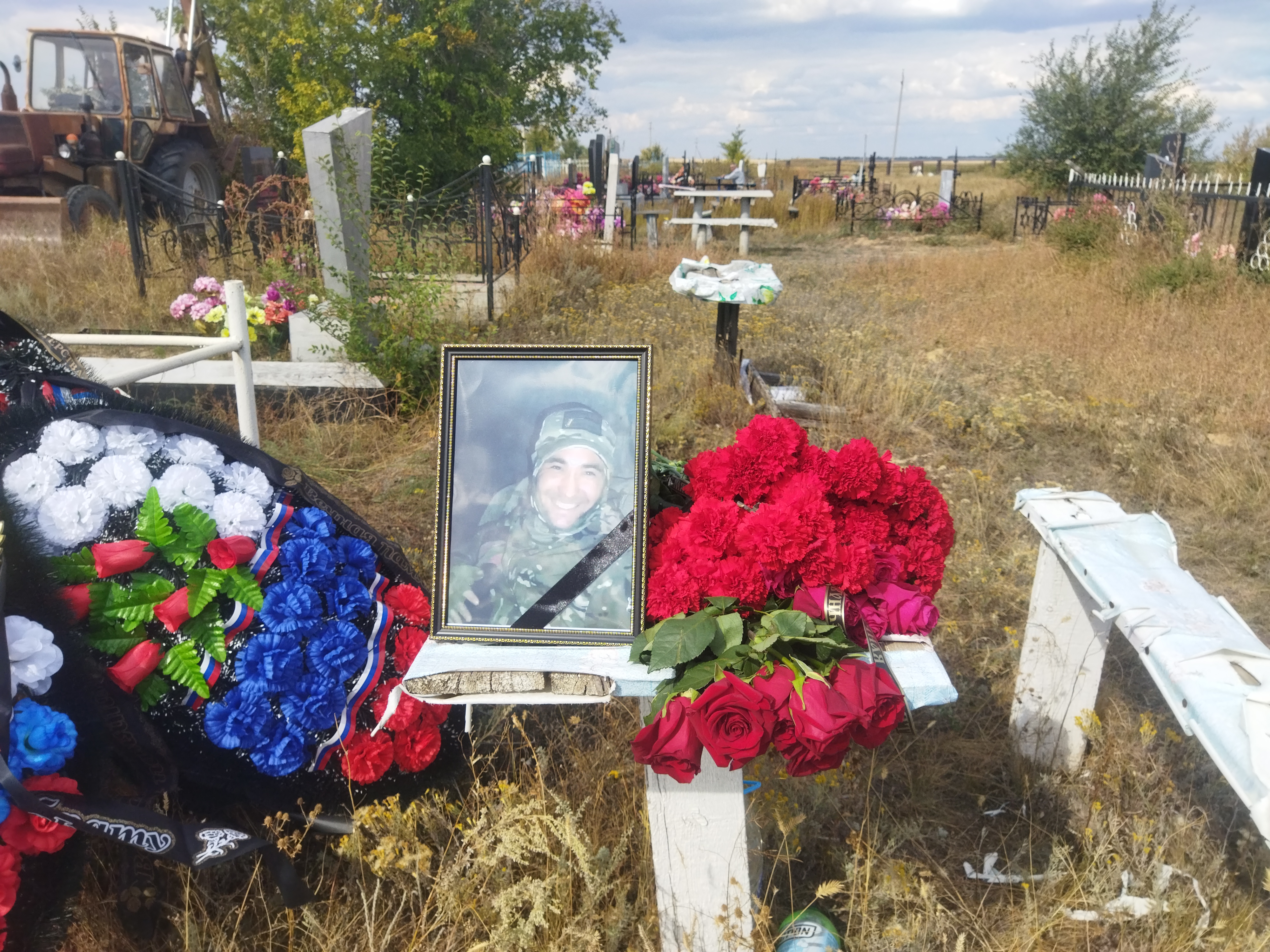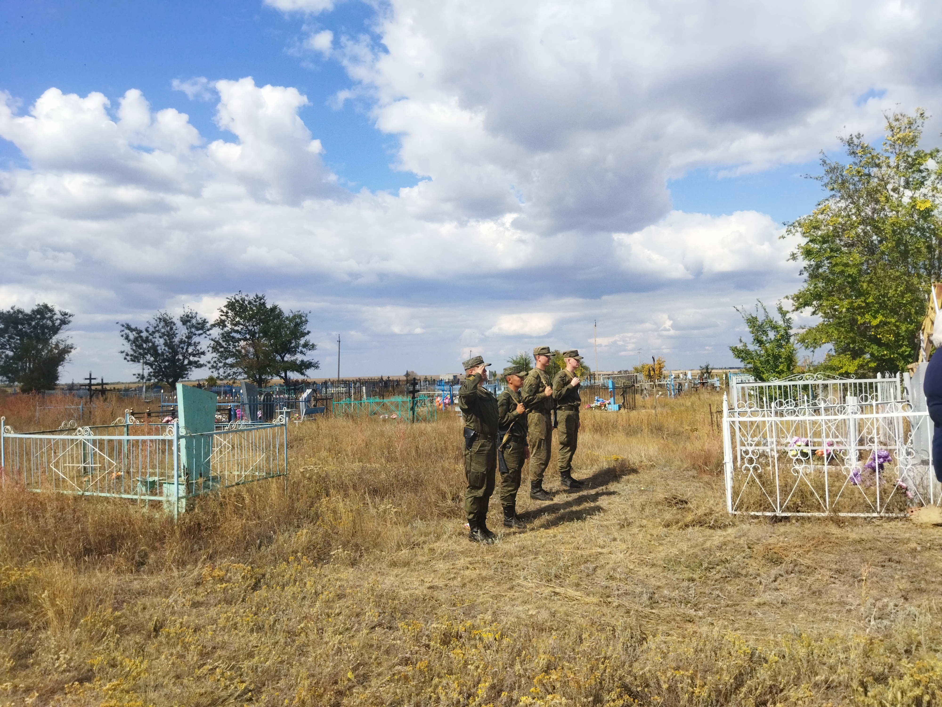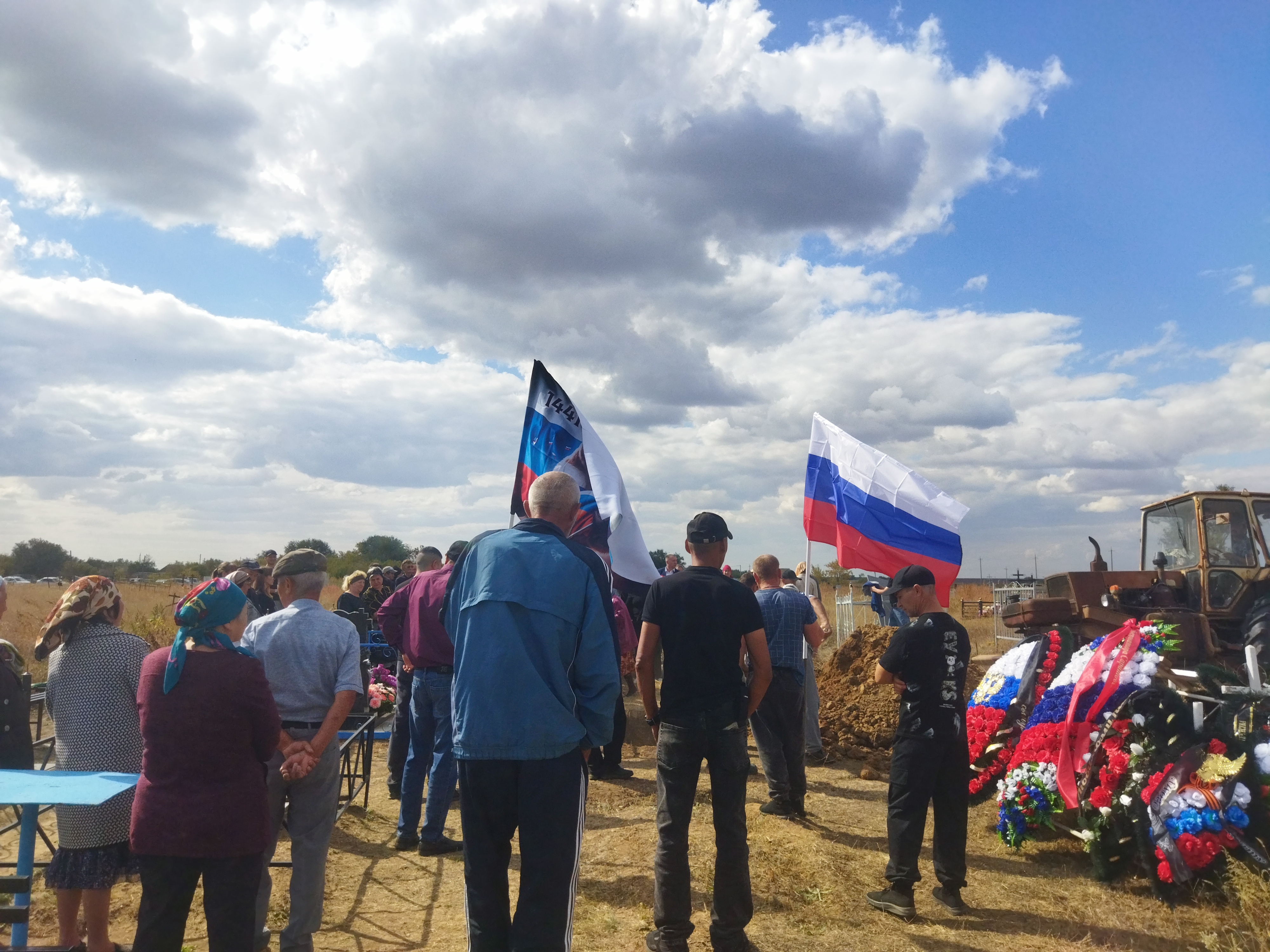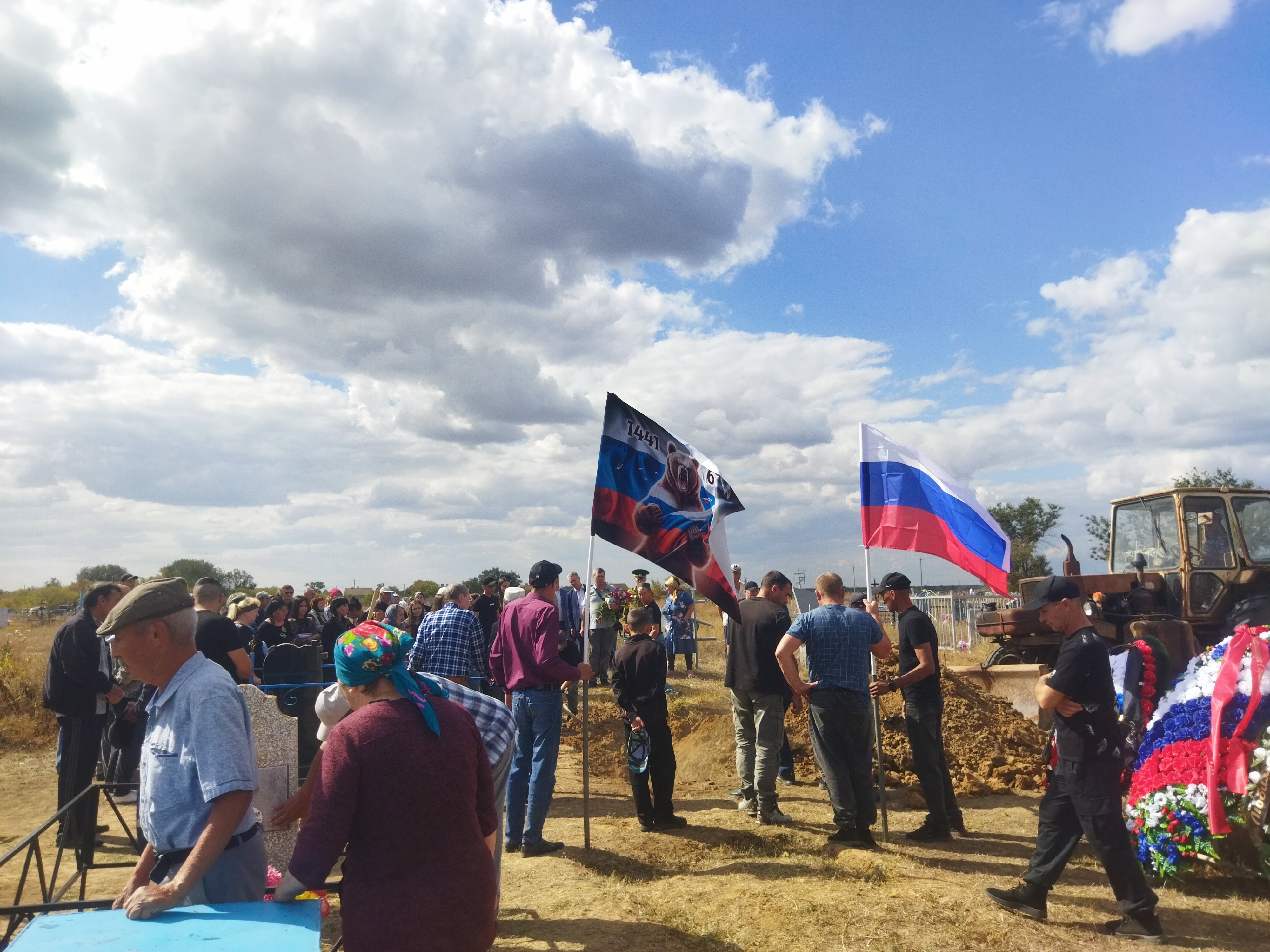 Похороны состоялись на сельском кладбище под оружейные залпы почетного караула. На могиле героя водрузили российский флаг.