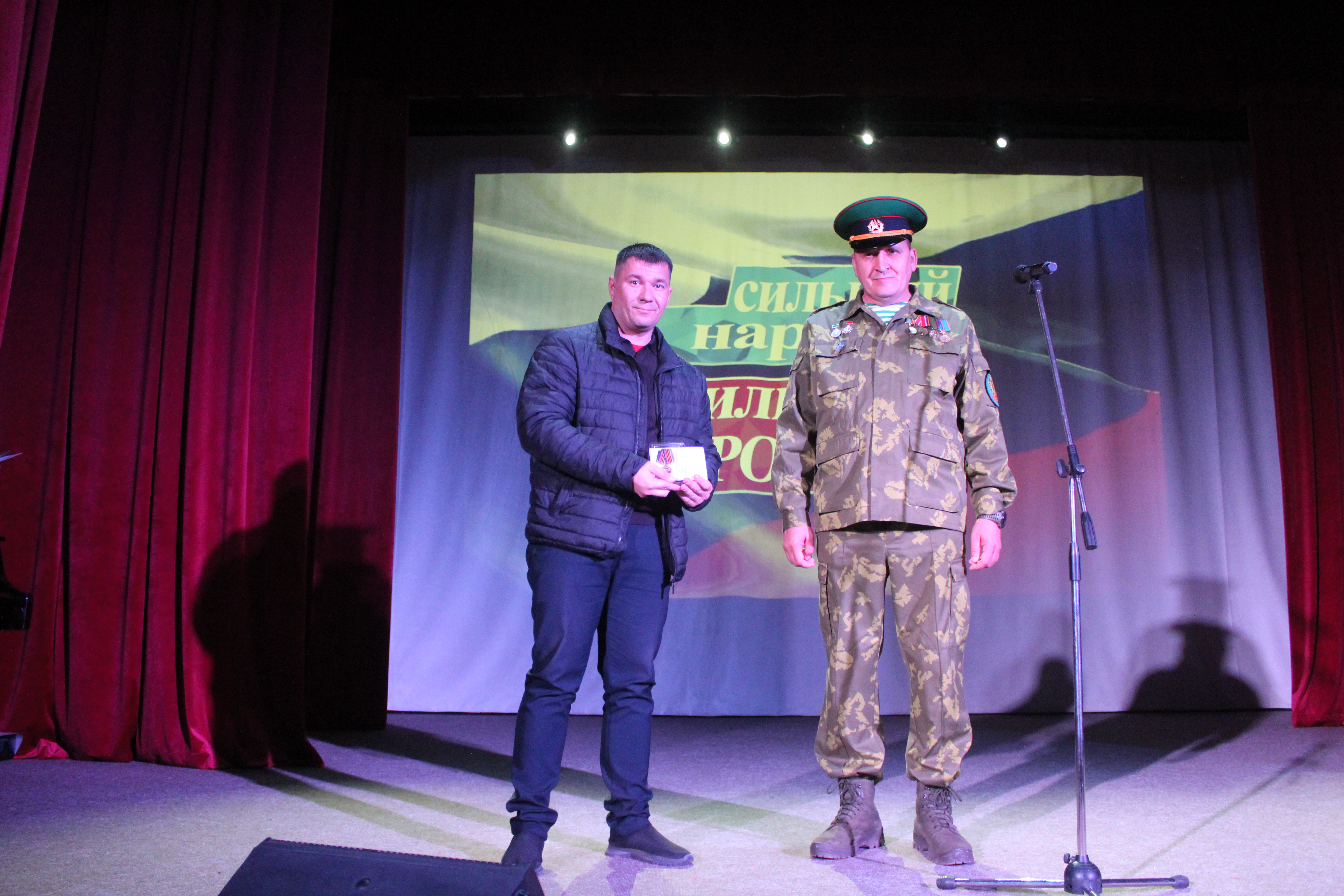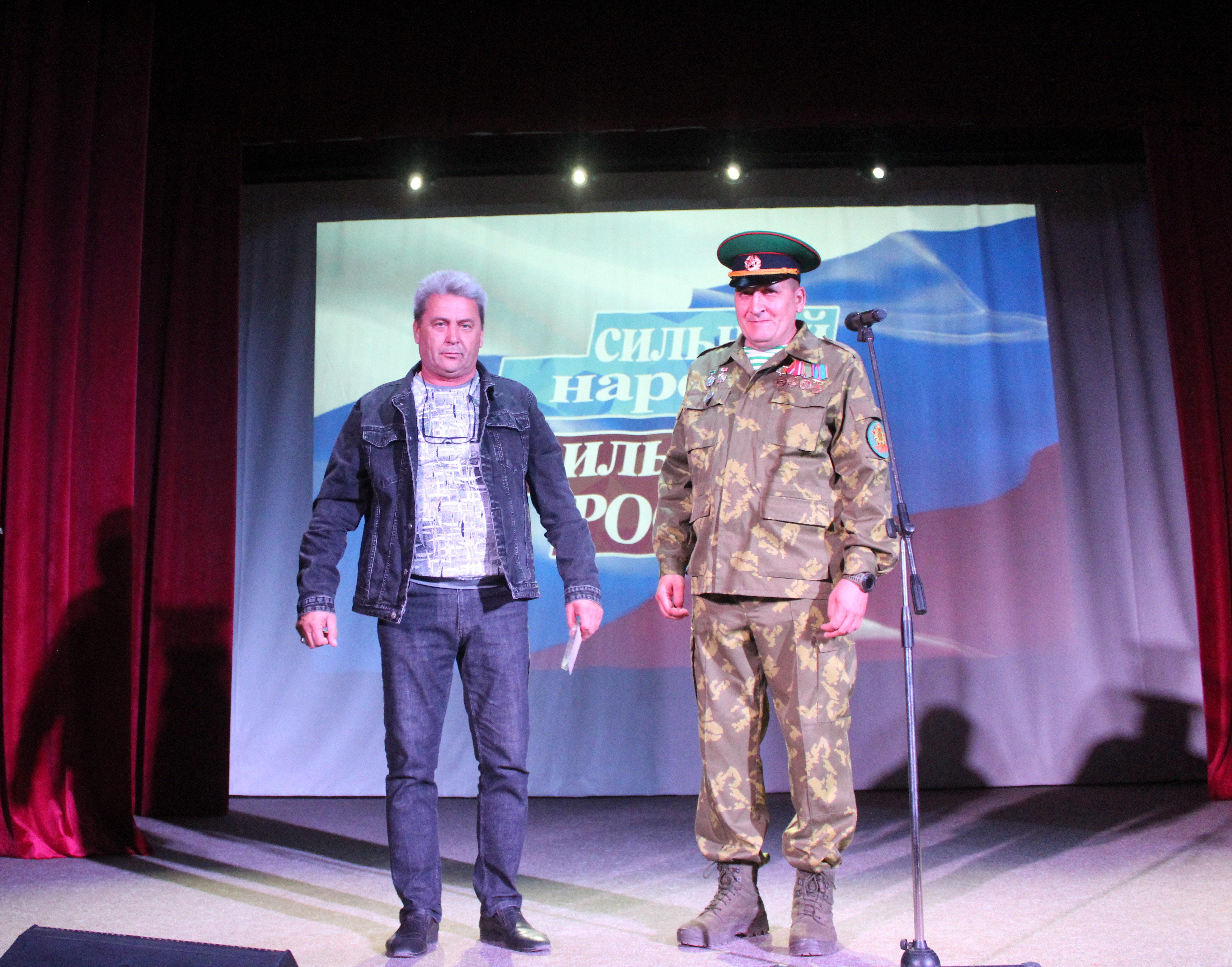 В патриотической программе "Сильный народ. Сильная Россия" приняли участие представители общественной организации "Пограничное братство" Федоровского района, настоятель храма святого праведного Иоанна Кроштадтского протоиерей Евгений, участники боевых действий, их семьи. В концертной программе звучали голоса детей - Тамара Алигаджиева исполнила песню "Нет Родины милее" Матвей Харченко и Матвей Лаврентьев читали стихи. Танцевальный коллектив "Вдохновение" подарил народный танец "Калинка". Прозвучали песни о России, наших защитниках от Е. Донченко, трио "Девчата", Х. Плеевой, А. Желтовой, О. Тихоновой, В. Коноваловой, В. Оломской, Е. Выдыш, Е. Гордеевой, Т. Даниловой, Т. Кочетовой.