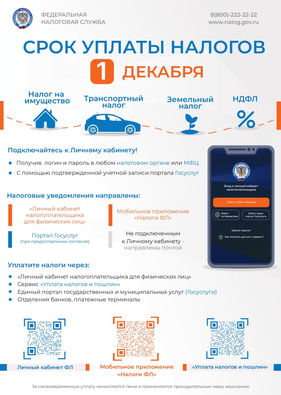 Налогоплательщики могут получить уведомление на уплату имущественных налогов, произвести сверку, подать заявление на предоставление льготы, подключиться к личному кабинету. При себе необходимо иметь документ, удостоверяющий личность.
