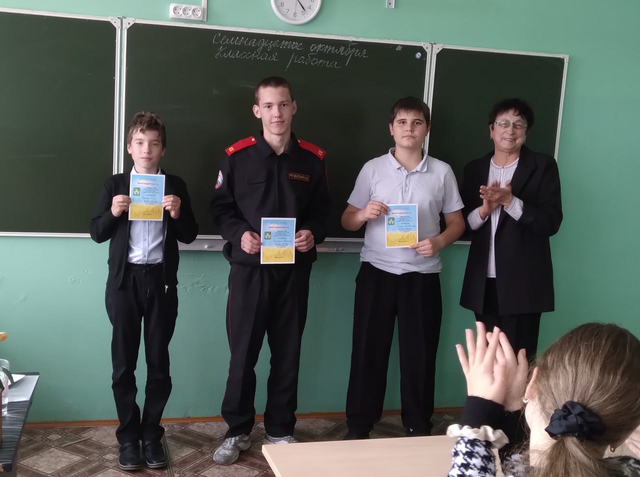 Жюри, а это были одноклассники, выбрали трех самых лучших, артистичных чтецов. Ими стали Никита Реченский, Михаил Айтамов и Егор Фёдоров.