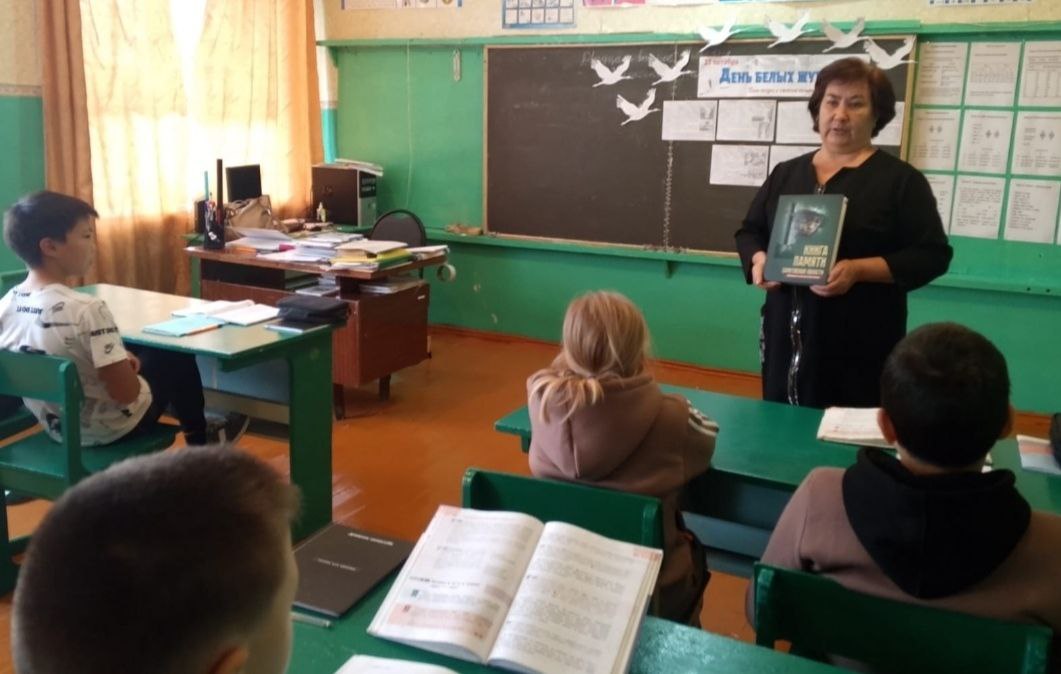 К этому мероприятию библиотекарь села Спартак Елена Переяшкина провела презентацию 41-го тома Книги Памяти Саратовской области «Шагнувшим в вечность наш поклон». Книгу для патриотического мероприятия предоставила семья Женалиевых, имя их сына Женалиева Аскара Сарсенгалиевича увековечено в 41-м томе, который посвящён героизму наших земляков, отдавших свои жизни в ходе специальной военной операции.