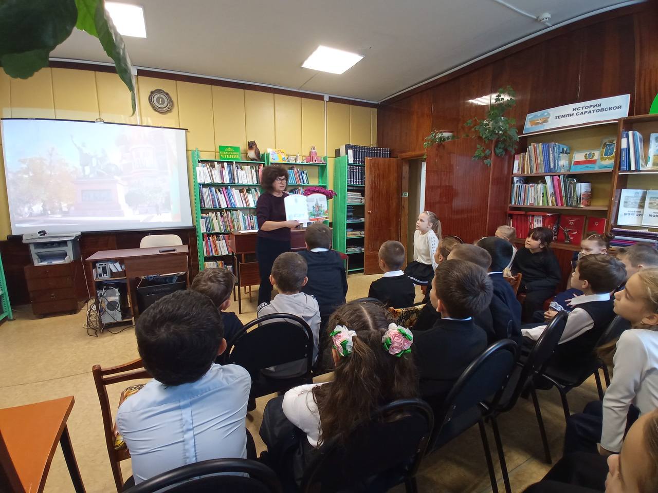 В преддверии праздника в центральной детской библиотеке для ребят 2 класса Мокроусской школы им. З.К. Пряхиной (кл. руководитель Приймак О.А.) провели патриотический час «Славься Русь - Отечество мое!». Знакомство с праздником началось с виртуального путешествия в столицу нашей Родины, где учащиеся посетили главную достопримечательность Москвы - Красную площадь, на которой стоит памятник Кузьме Минину и Дмитрию Пожарскому. Затем перенеслись в прошлое, в стародавние времена, чтобы понять, как праздник Дня народного единства связан с этими людьми. Ребята узнали, как Кузьма Минин и Дмитрий Пожарский сумели поднять весь народ на защиту своей земли и объединив его, победили врага. Именно единение помогло справиться с коварным врагом. Теперь день освобождения Москвы от захватчиков празднуется, как День народного единства. Когда народ един - он непобедим! Познакомившись с историей нашей страны, ребята вернулись в сегодняшнее время и рассказали о государственных символах России. А также полюбовались красотами нашей необъятной Родины, от крайнего севера до теплого юга. И как бы далеко мы не жили друг от друга: на севере, юге, западе или востоке - всех нас объединяет такая замечательная страна –Россия. Мы вместе, мы едины, мы дружны, а значит мы сильные.