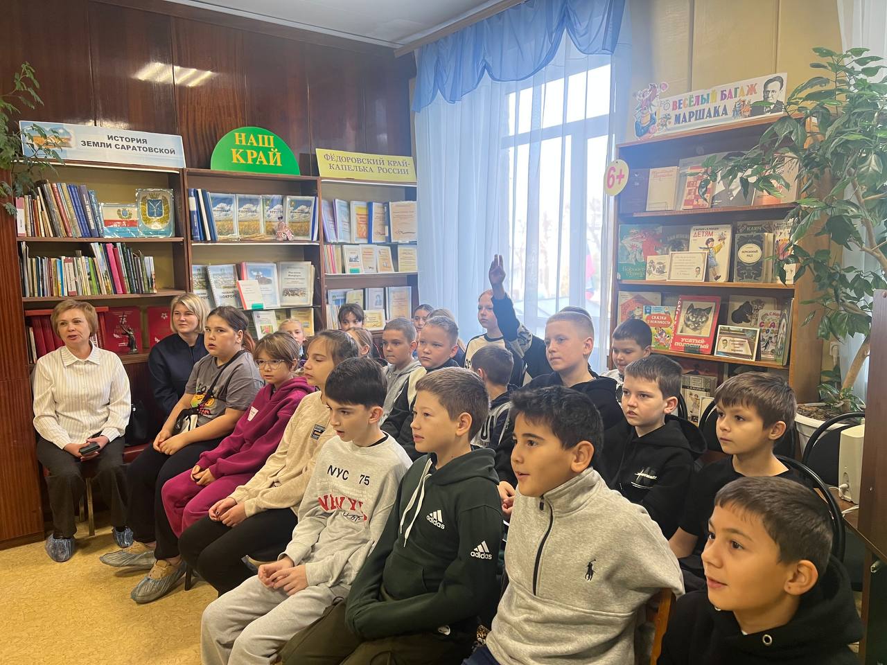 В дни школьных каникул центральная детская библиотека для ребят 3 «А» (кл. рук. Аносова Д.Э.) и 4 «А» класса (кл. рук. Никитина Н.И.) подготовила литературно-игровую программу «По страницам любимых книг». Нам трудно представить мир, в котором нет книг. К ней мы привыкли с самого детства, она раскрывает перед нами удивительные тайны жизни и дает полезные советы в трудную минуту, учит нас быть добрее, мягче друг к другу, учит милосердию, сочувствию. Ребята отправились в уникальное путешествие в сказочный мир, где добро побеждает зло и где рядом есть верные друзья. Активно участвуя в конкурсах и викторинах, дети демонстрировали отличные знания сказок отечественных и зарубежных писателей, анализировали мораль басен, ставших крылатыми выражениями. Каждое новое задание было по-своему интересно, игра прошла увлекательно. Ребята получили заряд положительных эмоций и проверили свои знания. Завершилось мероприятие показом увлекательной видео-мульти-викторины, созданной по страницам любимых книгам. Путешествие в сказку закончилось, но сказка всегда остается с читателем, стоит только взять книгу в библиотеке, открыть её и прочитать.
