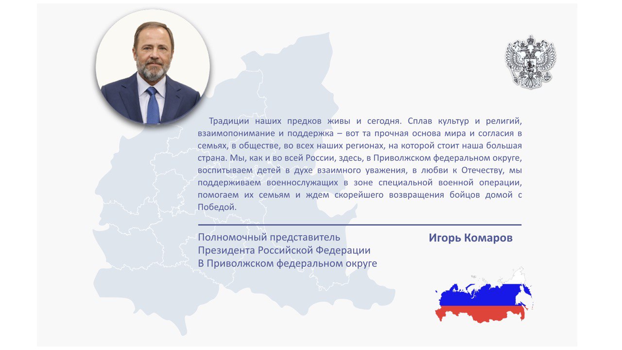 Поздравление полномочного представителя в ПФО Игоря Комарова с Днем народного единства