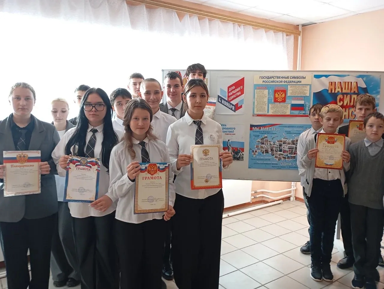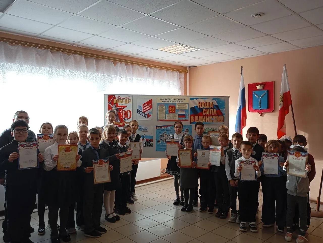 В этот же день среди учащихся начальных классов движения "Орлята России", среднего и старшего звена "Движения Первых" состоялись спортивные соревнования по волейболу. В красивом отремонтированном спортивном зале собрались ребята и болельщики. Под девизом "Наша сила в единстве! " каждая команда в упорной борьбе показала свою сплоченность и умение добиваться поставленной цели.