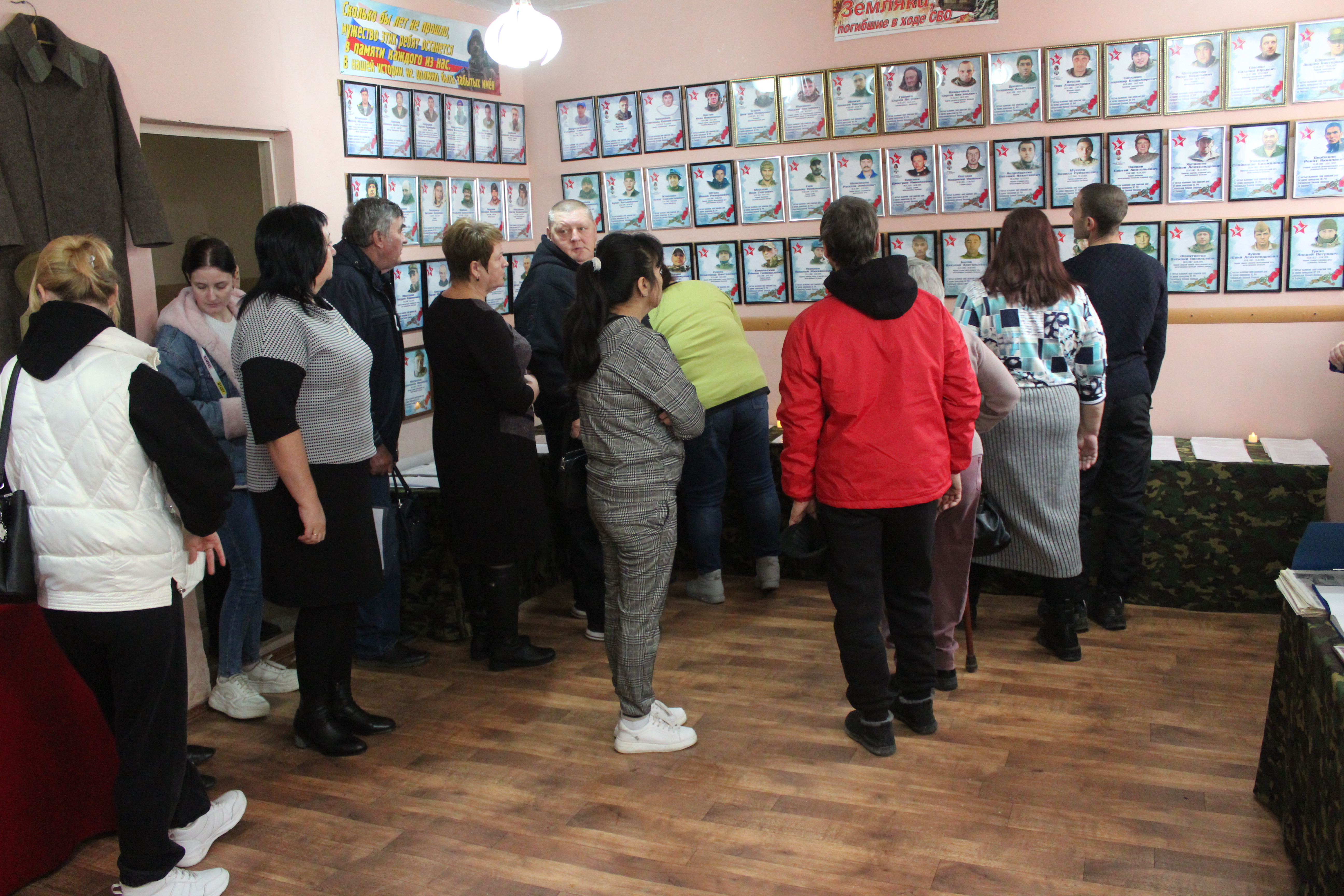 В музейной комнате экспозиция с портретами отважных бойцов, отдавших свою жизнь за нашу мирную жизнь.