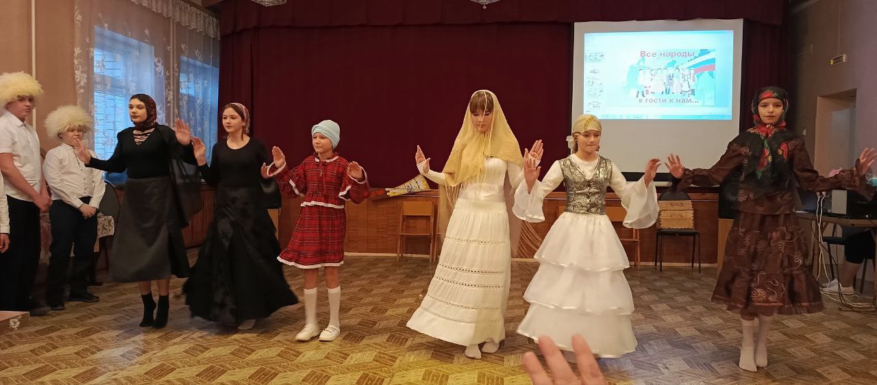 В фестивале под названием «Все народы в гости к нам!» приняли участие школьники 1-4 классов и 5 -9 классов. Каждый класс представлял свою национальность, приготовив песню, танец, игру и стол с национальными блюдами. Фестиваль собрал представителей таких народов как русские, мордва, евреи, якуты, казахи, дагестанцы и кубанские казаки. Учащиеся и классные руководители сумели подготовить интересную, многожанровую, просветительскую и эмоциональную программу. Каждое выступление зрители встречали и провожали бурными аплодисментами.