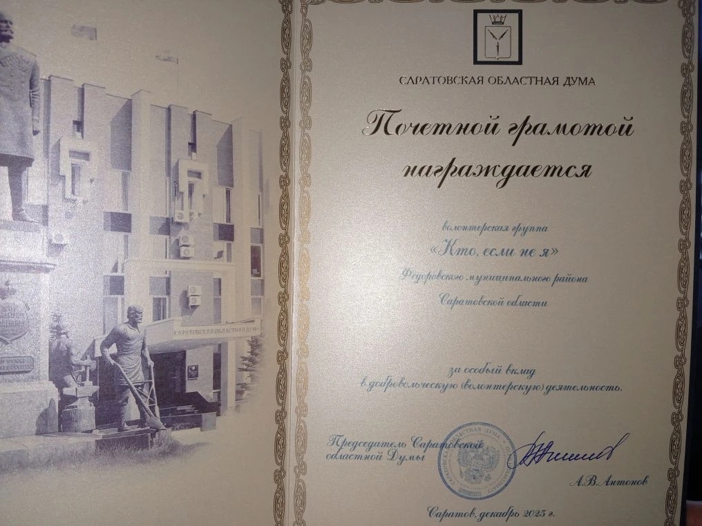 Волонтеры Федоровского района удостоены наград Саратовской областной Думы.