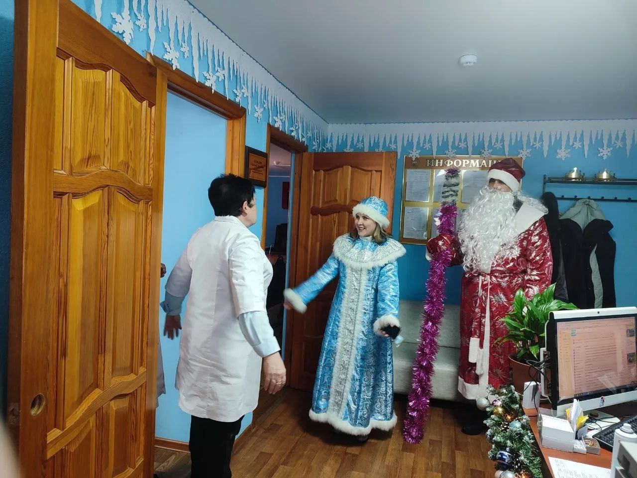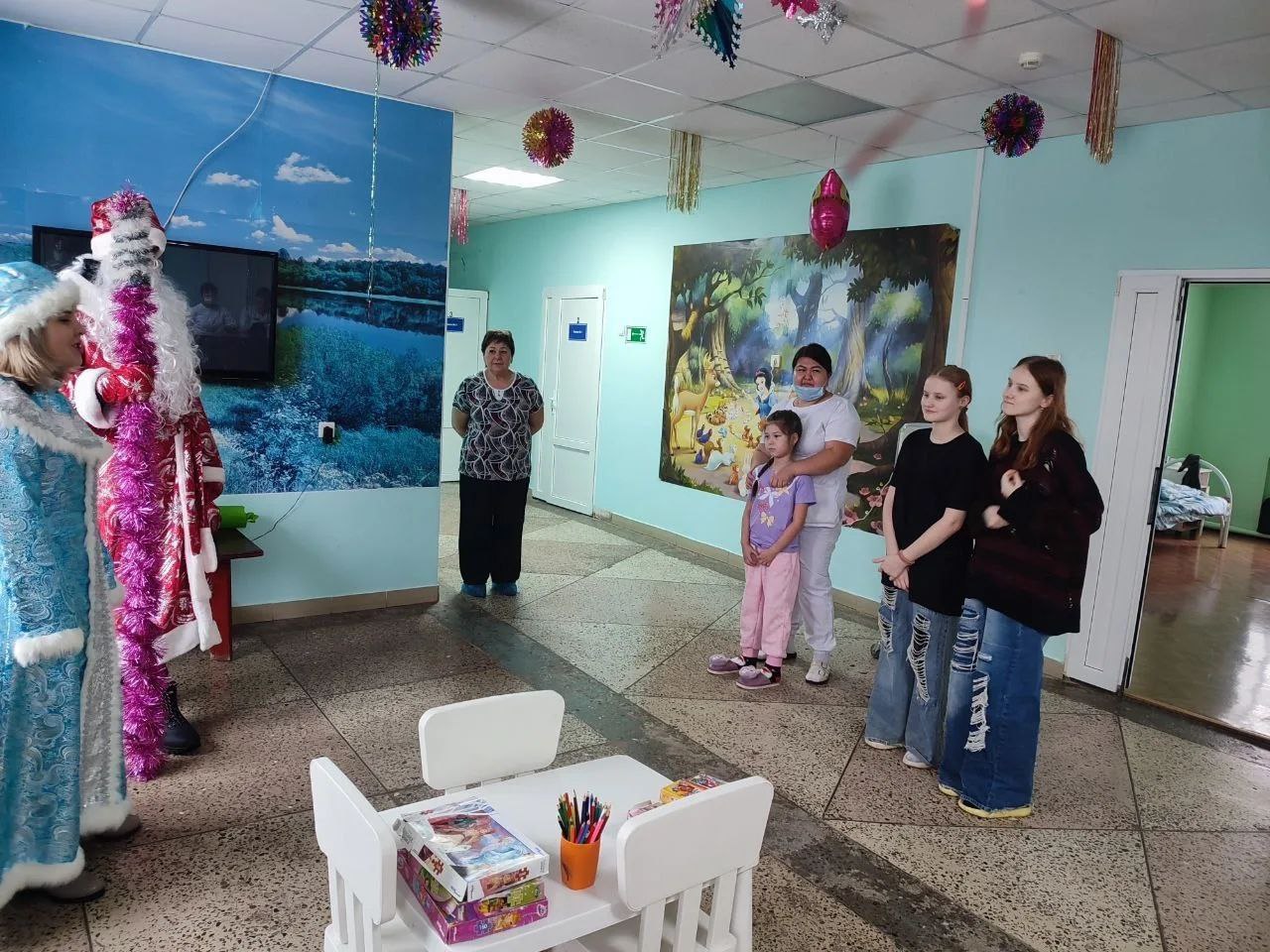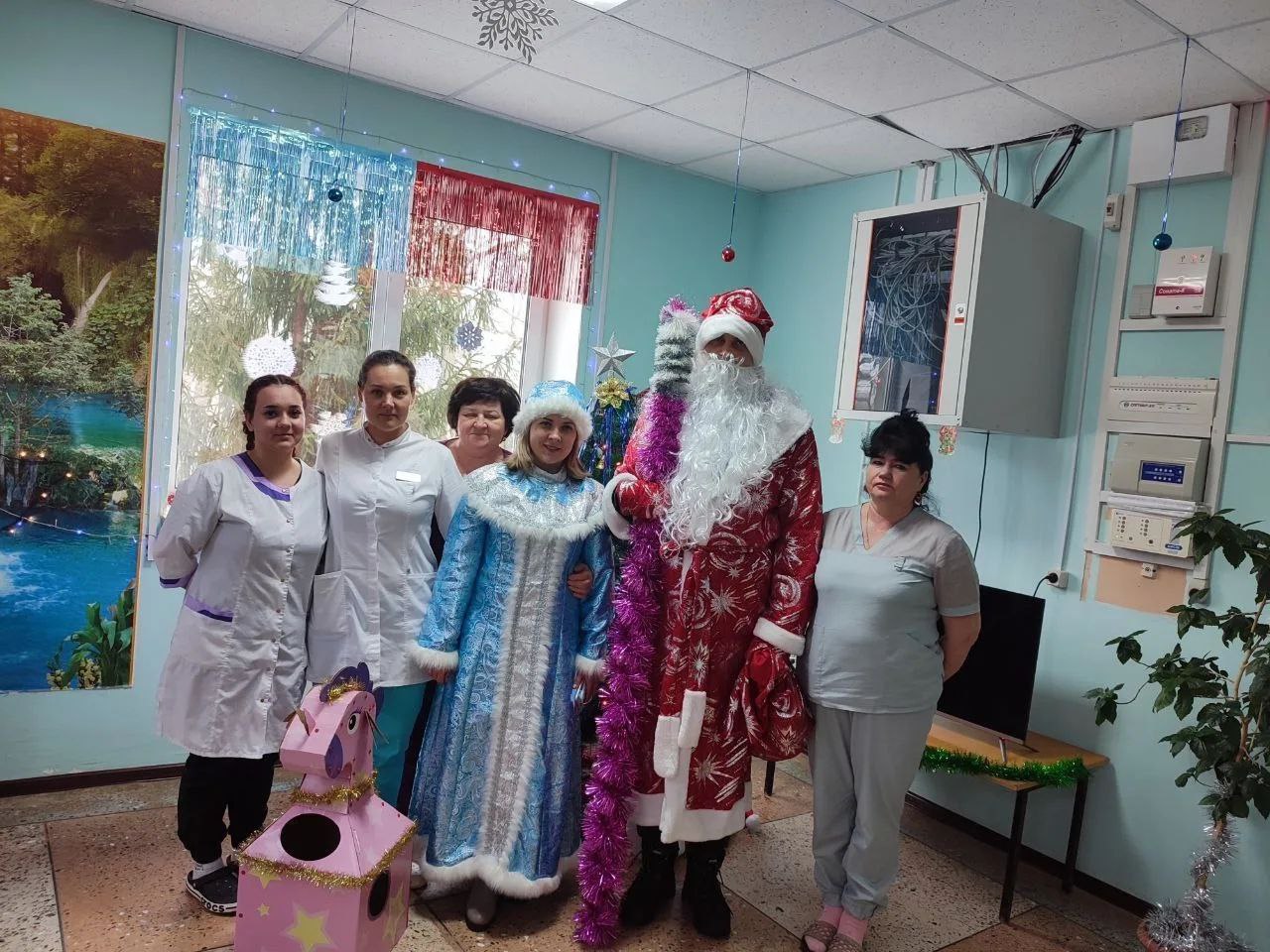 Поздравления и сладкие угощения от Дедушки Мороза и Снегурочки получили пациенты детского, терапевтического и паллиативного отделений.