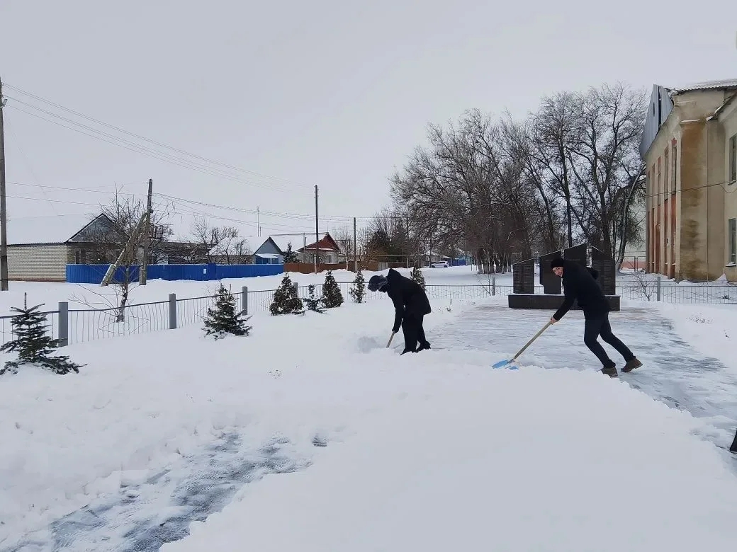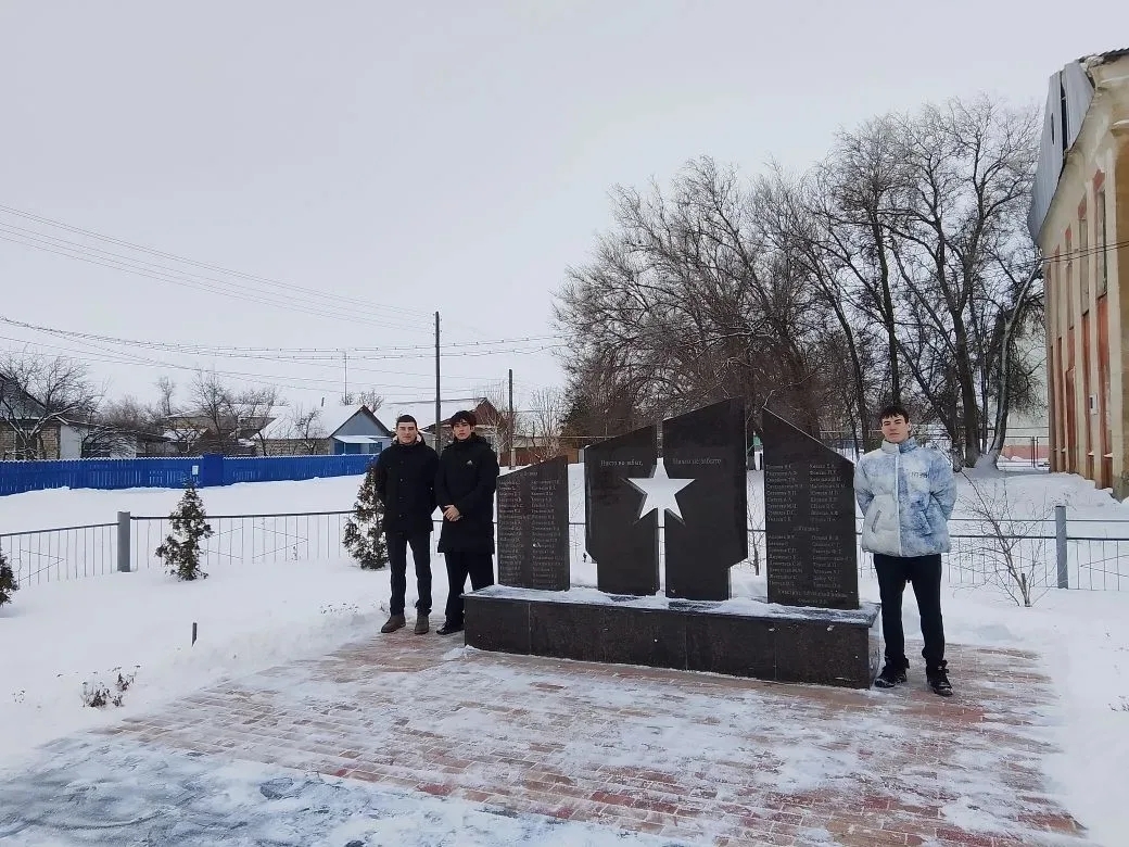 Под руководством педагога Д.В. Шаткина отряд "Мы Патриоты", учащиеся 11 класса Долинской средней школы расчистили от снега и навели порядок на территории памятника воинам, погибшим в годы Великой Отечественной войны.