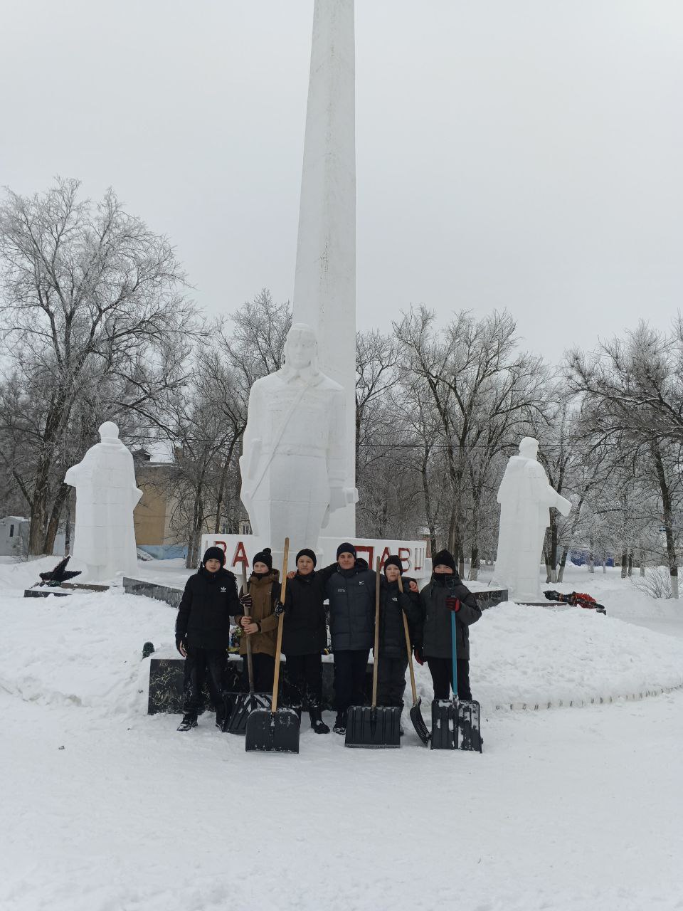 Вооружившись лопатами, юнармейцы оперативно убрали снег, обеспечив чистоту и порядок вокруг мемориала. Их труд демонстрирует искреннее отношение молодого поколения к истории родного края и глубокую признательность героям прошлого.