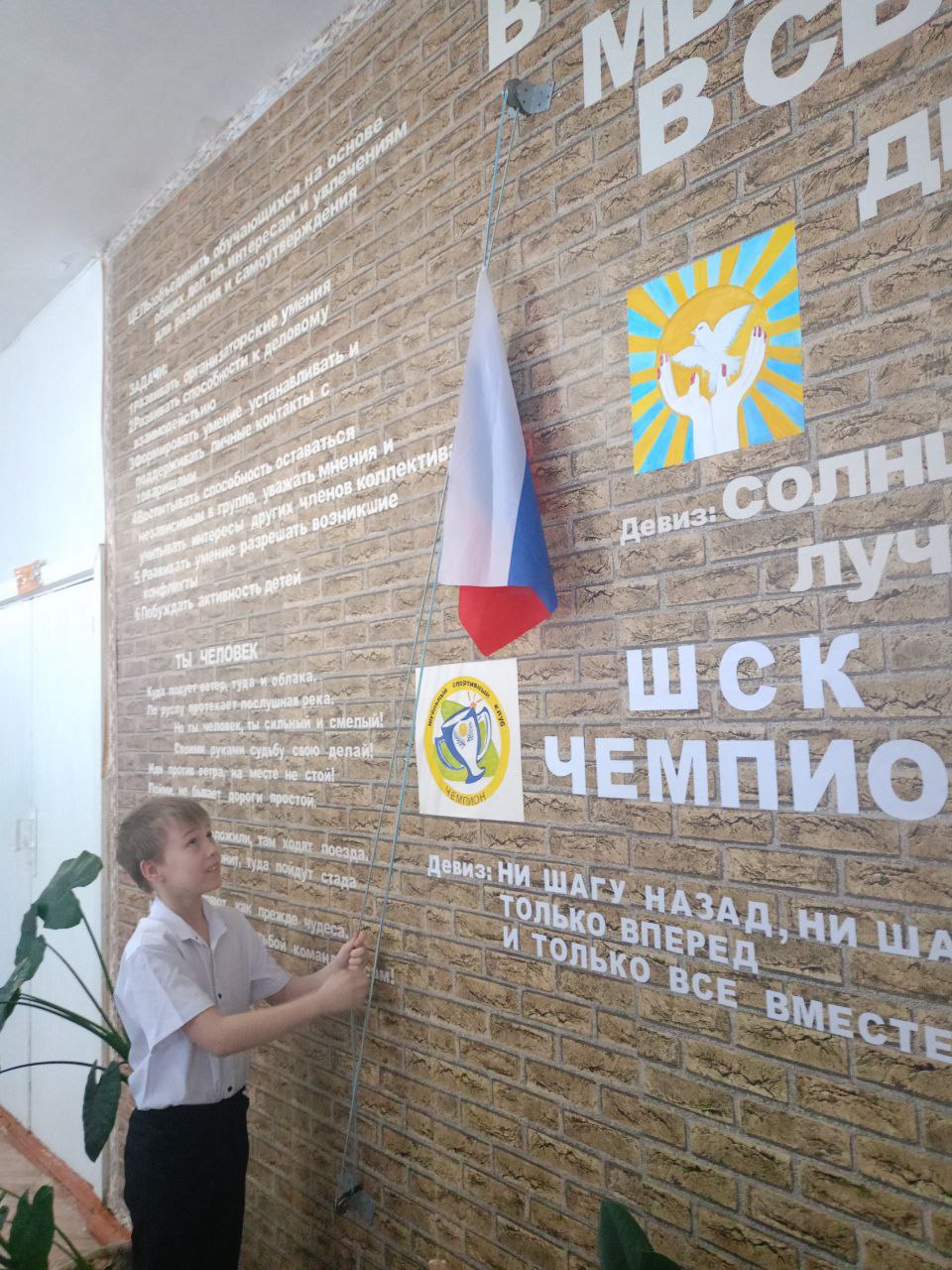 В Калдинской школе утро новой недели началось с поднятия флага РФ и исполнения государственного гимна.