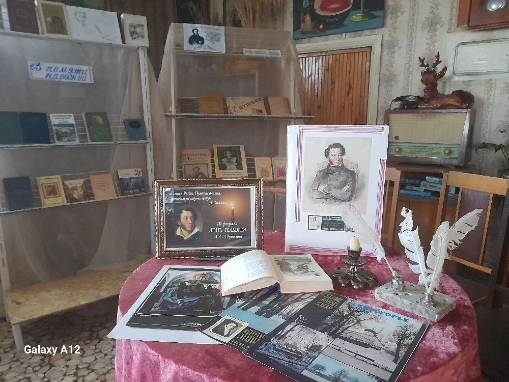 Здесь была развернута книжная выставка, на которой представлены произведения поэта, книги о его жизни и творчестве, а также литература о последних днях Пушкина.