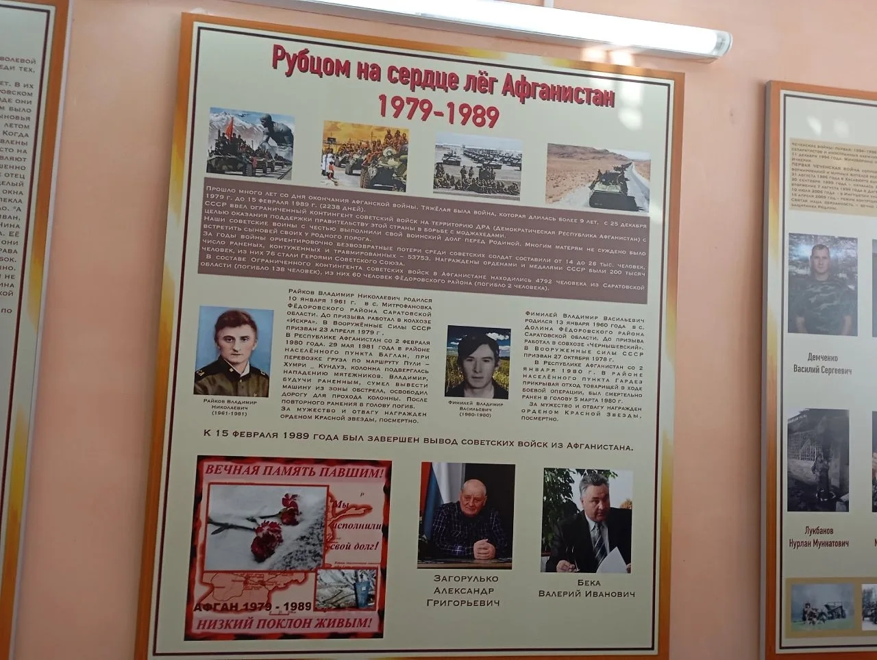 Не меньший интерес ребята проявили к событиям времён Чеченской войны. Школьники познакомились с биографией каждого участника тех военных действий, бывших учеников школы с. Долина.