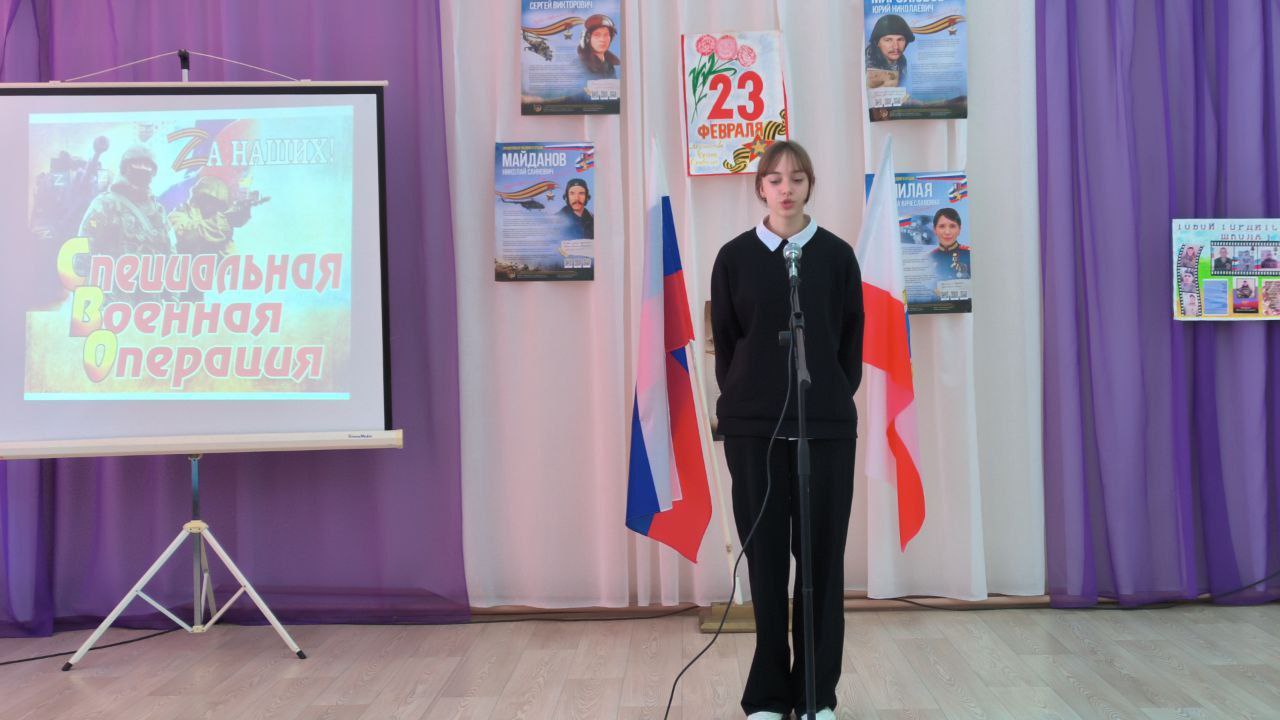 Коллектив школы приготовил творческие патриотические номера художественной самодеятельности, а ребята начальных классов вручили мужчинам праздничные открытки, изготовленные своими руками.