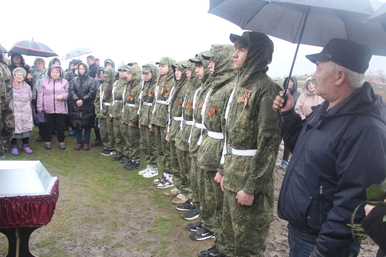 У гроба с телом погибшего воина встал почетный караул юнармейцев.