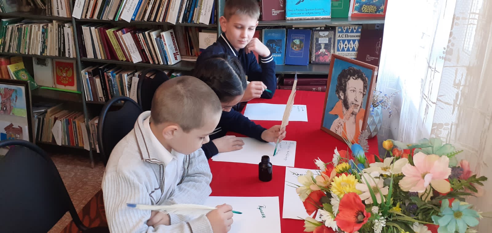 Взяв в руки перо, ребята написали на бумаге пушкинские строки.