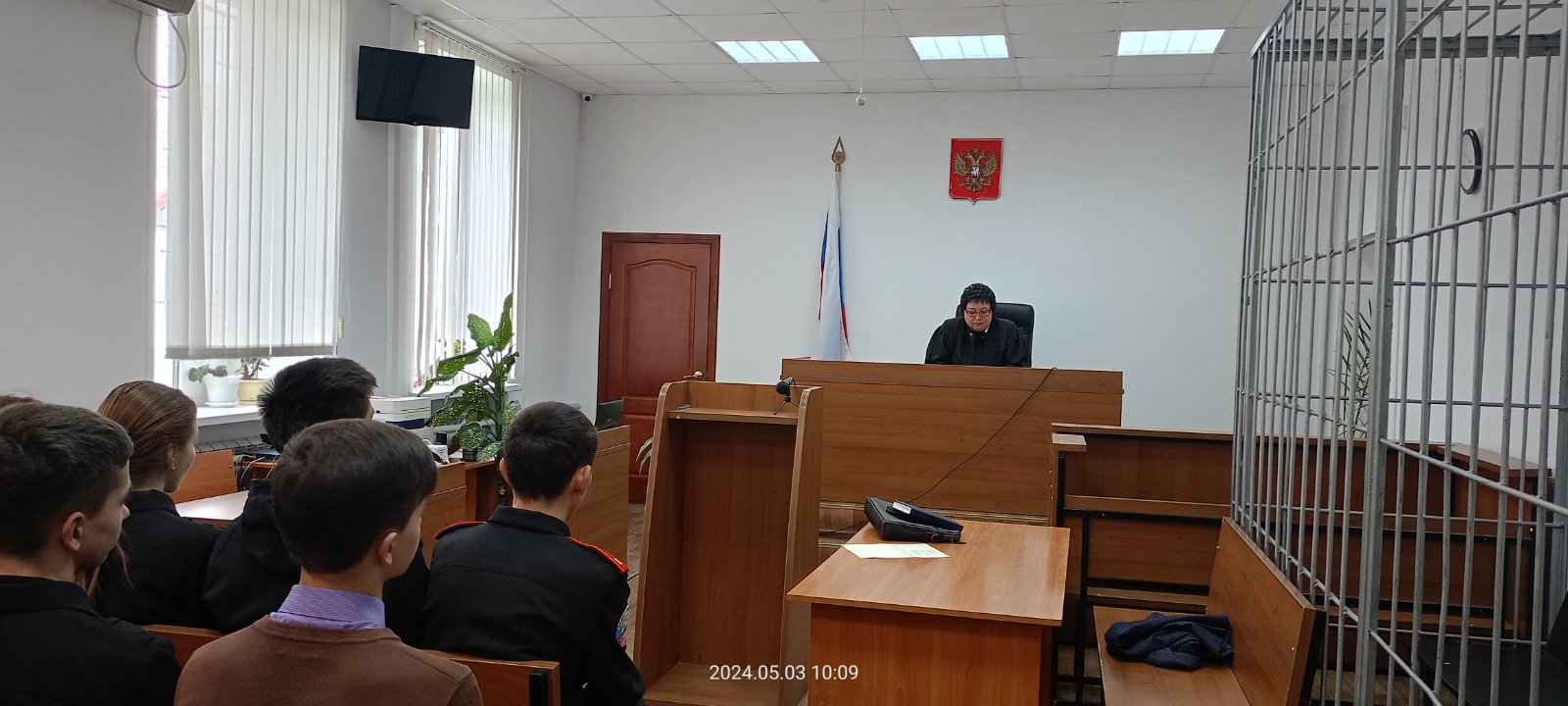Ребятам разрешили присутствовать на заседании суда по уголовному делу с участием прокурора и адвоката. Кадеты смогли на реальном примере ознакомиться с судебным процессом, ролью в нем судьи, государственного обвинителя, защитника и секретаря судебного заседания. Судья Оксана Сергеевна Белохвостова провела с ребятами профилактическую беседу о недопущении противоправных проступков.