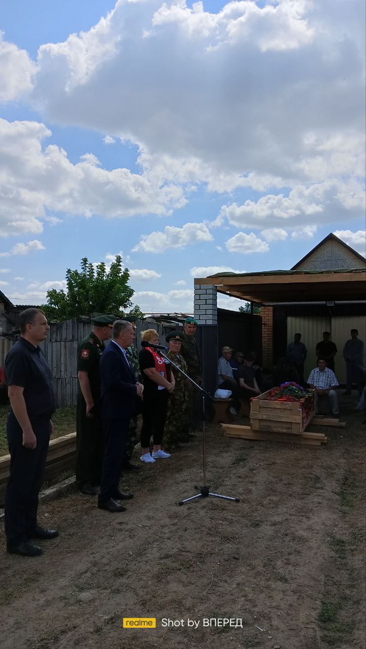 Официальные лица, представители духовенства, родные и односельчане бойца, отдавая дань уважения мужеству защитника Отчизны, отмечали, что в сложные для Родины времена, её сыны, независимо от национальности и вероисповедания, по призыву военкома, исходя из личных убеждений, по примеру предков, самоотверженно встают в единый строй.