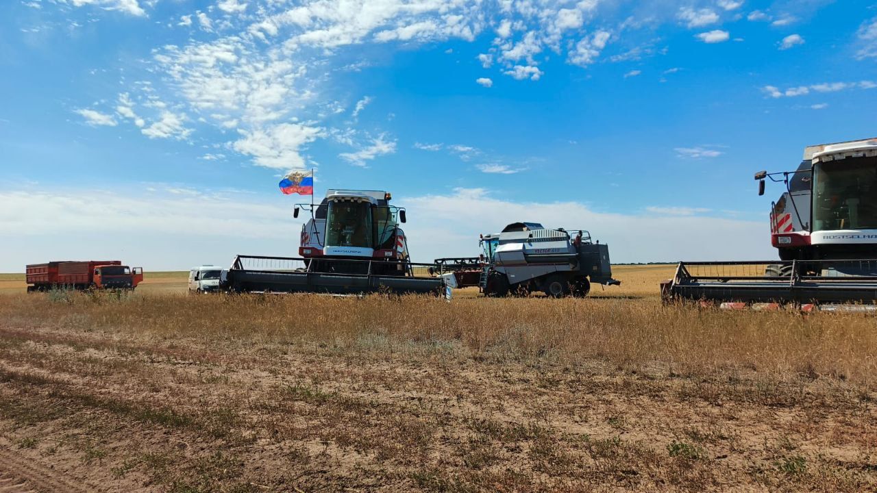 На отчетную дату яровые зерновые и зернобобовые культуры обмолочены на 51,2% площади, в том числе ячмень 100%, пшеница 81%, нут 15,4%, чечевица 87%.