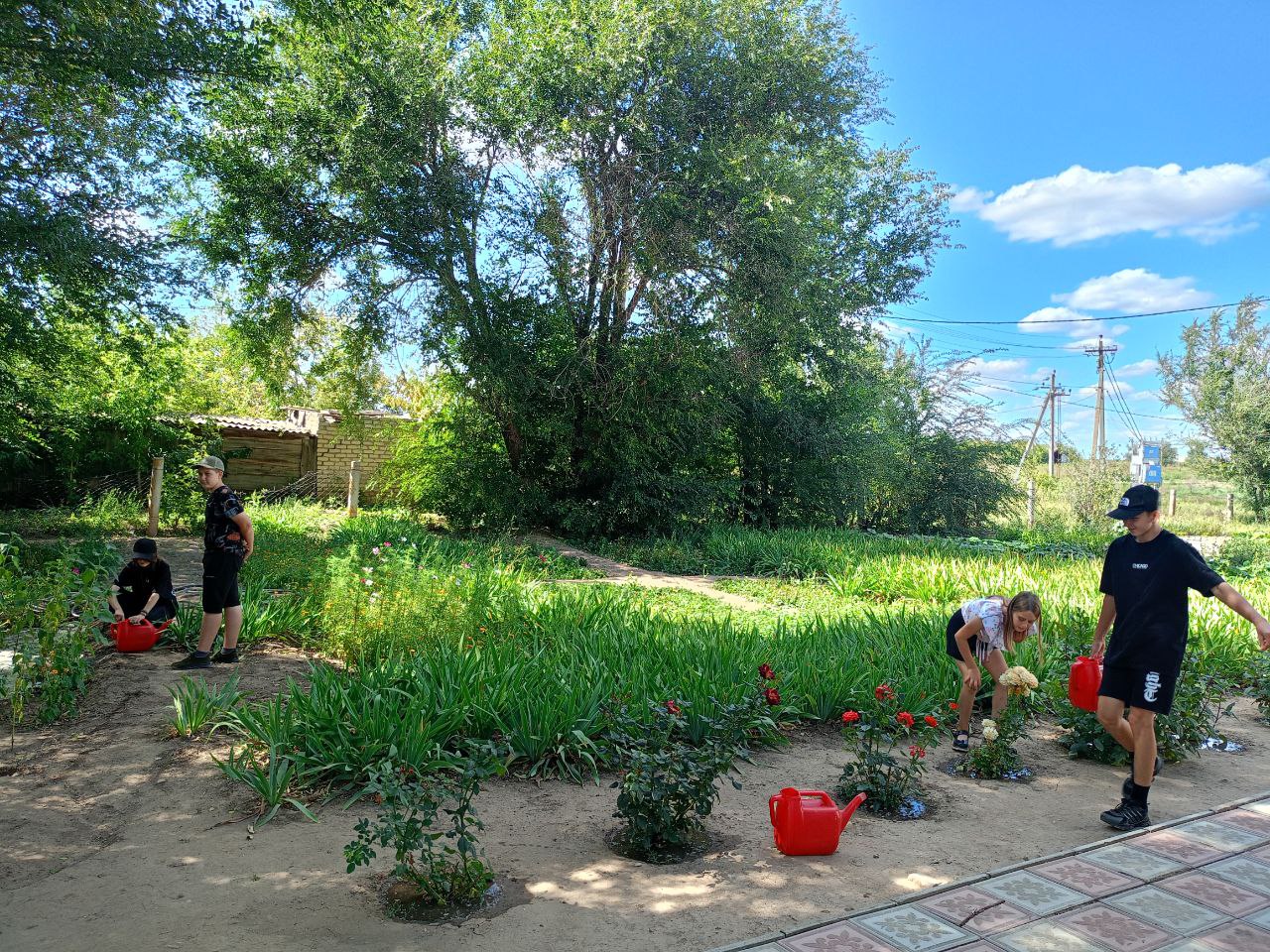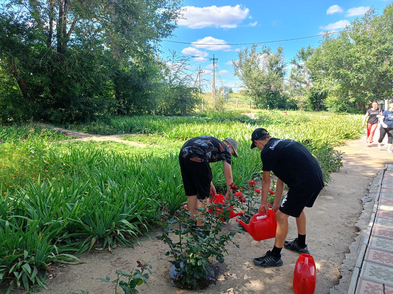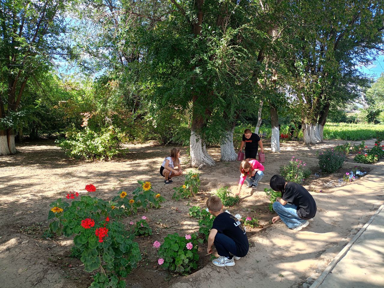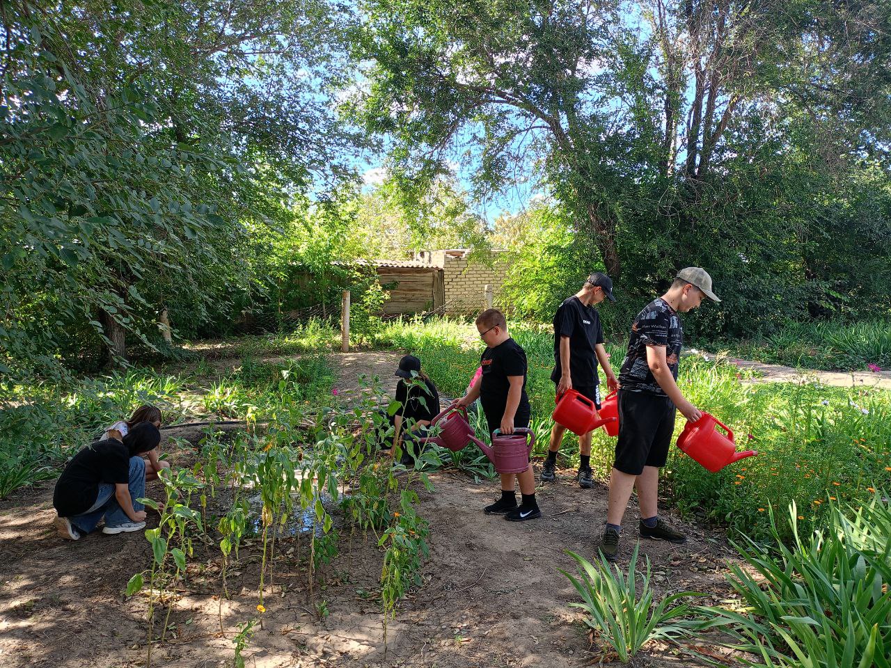 Всё лето калдинские школьники пропалывают цветочные клумбы, рыхлят и поливают почву, занимаются другими работами по благоустройству территории. Летняя практика - это прекрасная возможность помочь школе не только с поливом и прополкой, но и с выполнением других полезных дел.