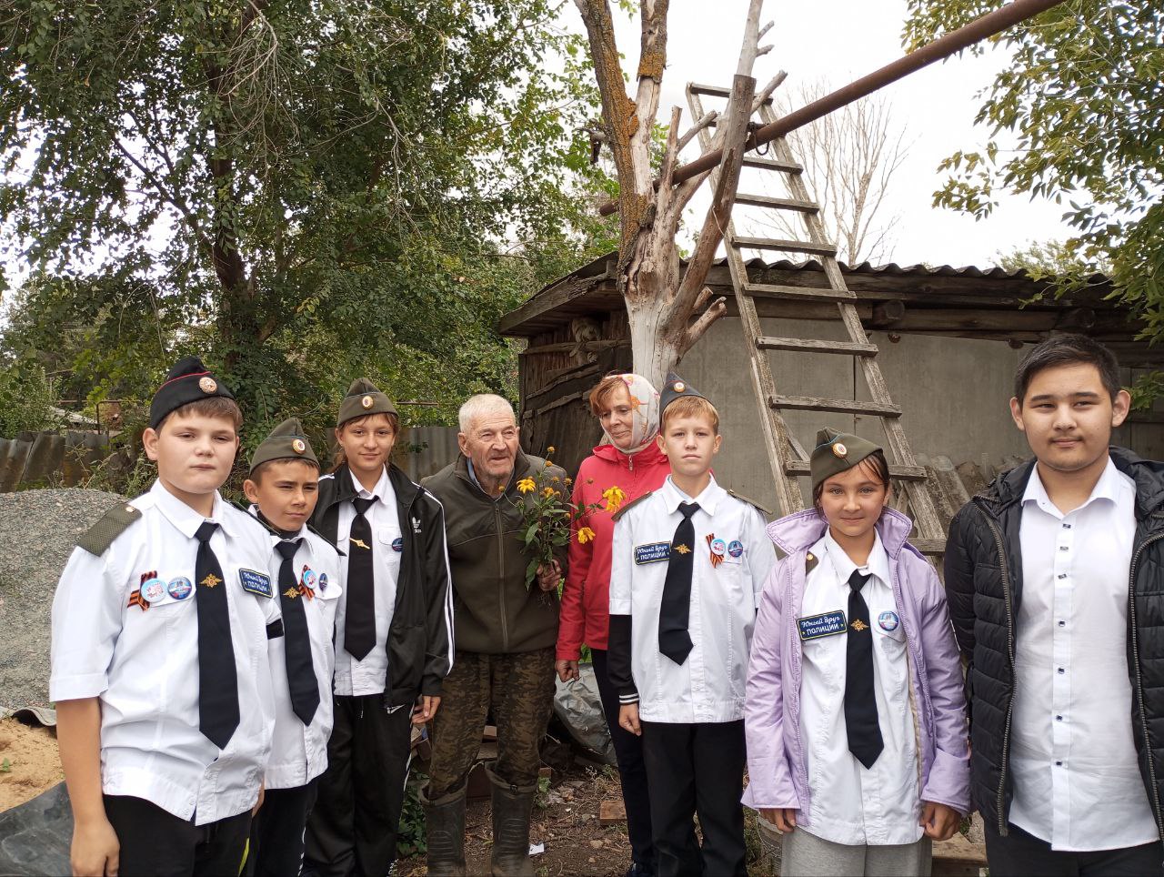 Вместе с учителем истории Еленой Николаевной Демьяненко, библиотекарем Лидией Викторовной Горкун ребята отряда ЮДП "СОКОЛЯТА" побывали в гостях у сторожила с. Еруслан Александра Васильевича Синицына (1937 г.р.). Ветеран поделился воспоминаниями: