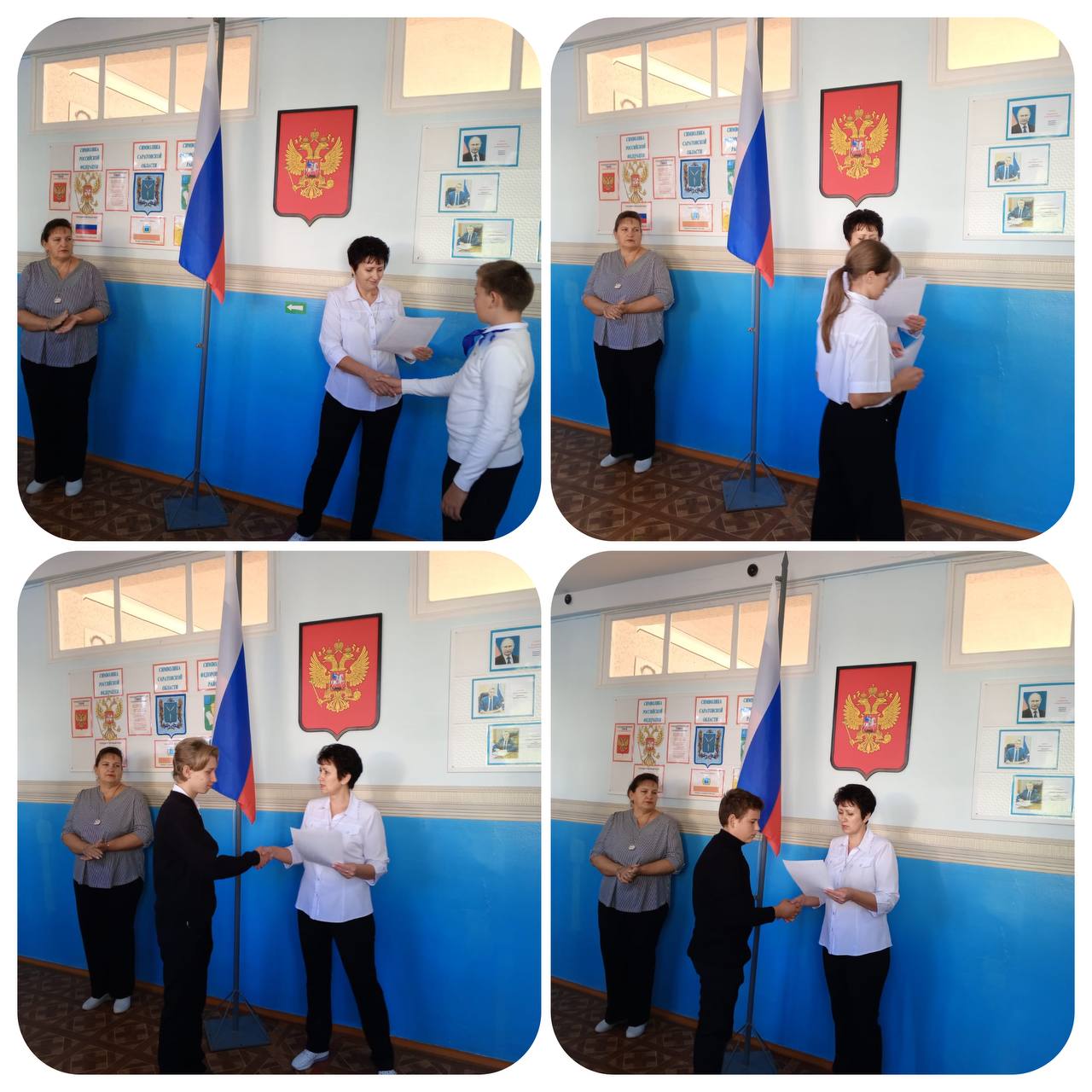В ходе линейки грамотами были награждены лучшие участники тотального диктанта «Семейная строка», приуроченного ко Дню грамотности Илья Сиротинин, 4 класс, Надежда Ахрамович, 6 класс, Михаил Зубко и Арсений Партем, 10 класс. После линейки учащиеся прошли на "Разговоры о важном" на тему "Творчество, которое объединяет".