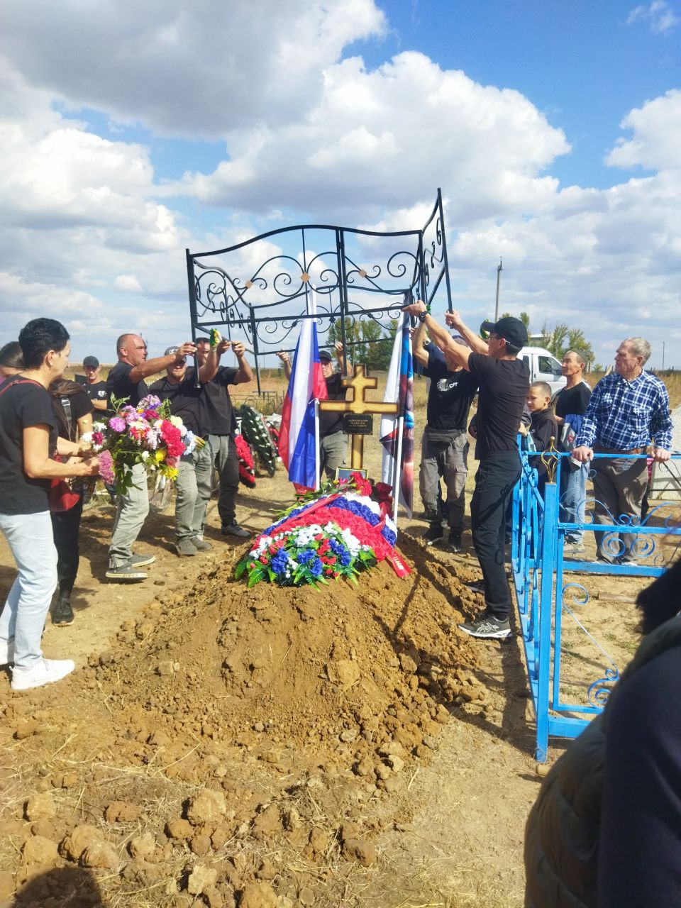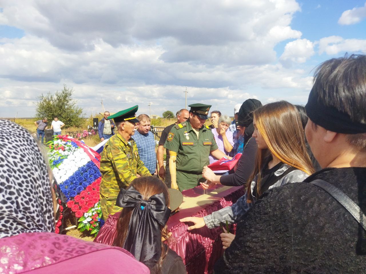 Похороны состоялись на сельском кладбище под оружейные залпы почетного караула. На могиле героя водрузили российский флаг.