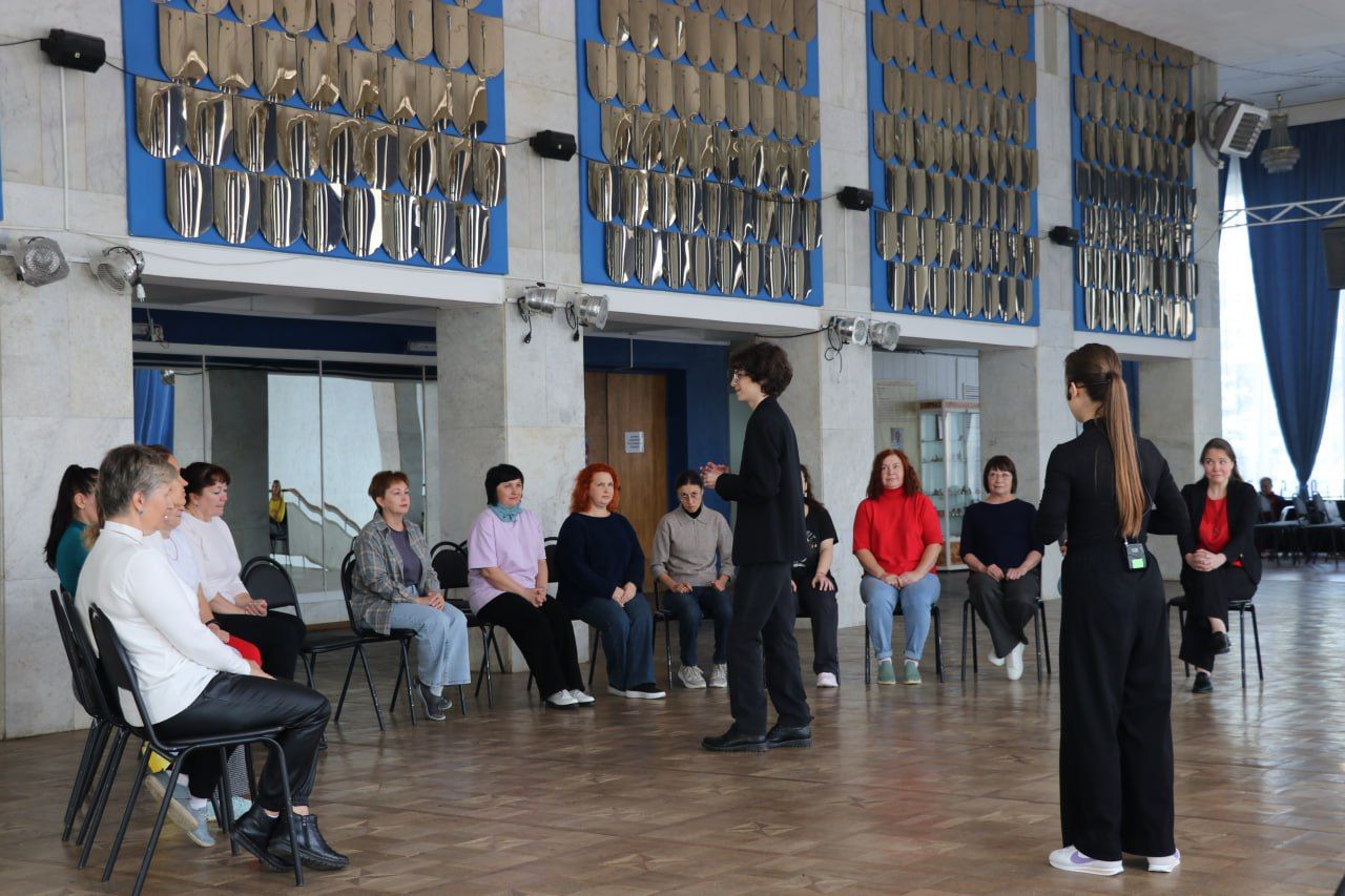 В заключительный день семинара-практикума для руководителей и режиссёров театральных коллективов педагог семинара Анастасия Михина провела лекцию на тему «Поиск актёрской выразительности через пластический тренинг», которая помогла участникам глубже понять, как пластика может обогатить актёрскую игру.