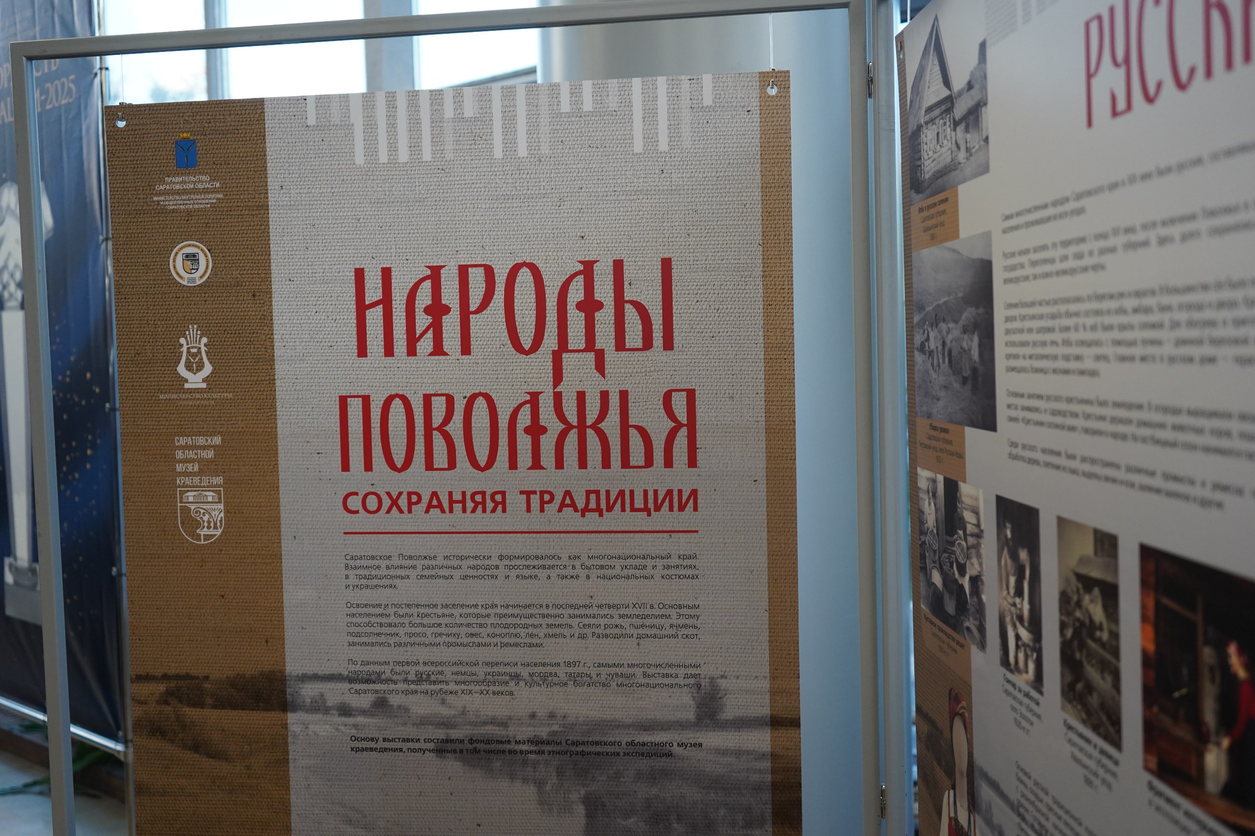 Перед началом мероприятия в фойе театра были организованы экспозиции, где гости могли познакомиться с культурным разнообразием и богатством народов Саратовского края.