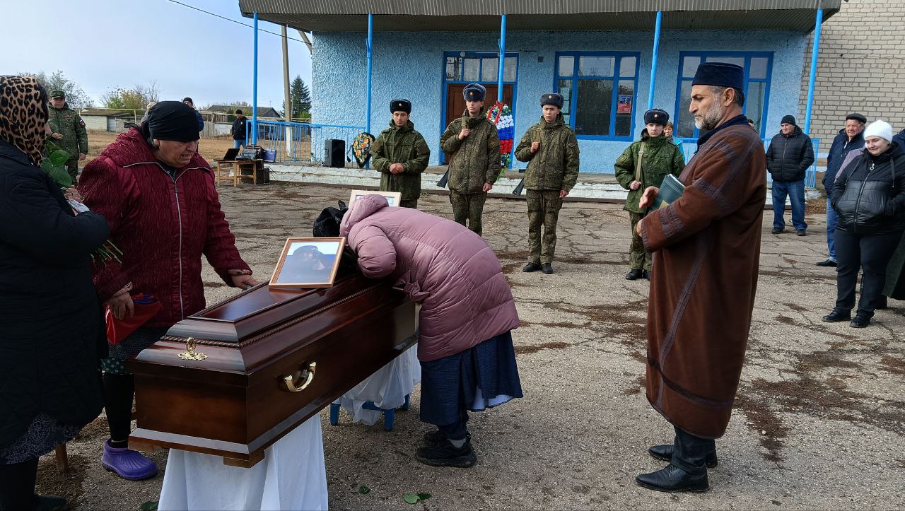 Десятки людей, друзья, знакомые, уроженцы Дагестана, пришли и приехали проститься с бойцом СВО на траурный митинг у сельского Дома культуры.