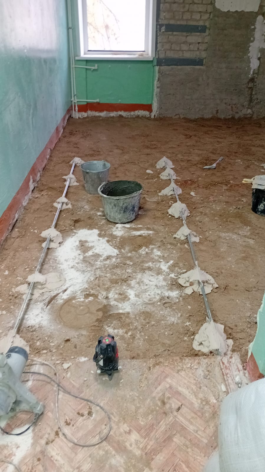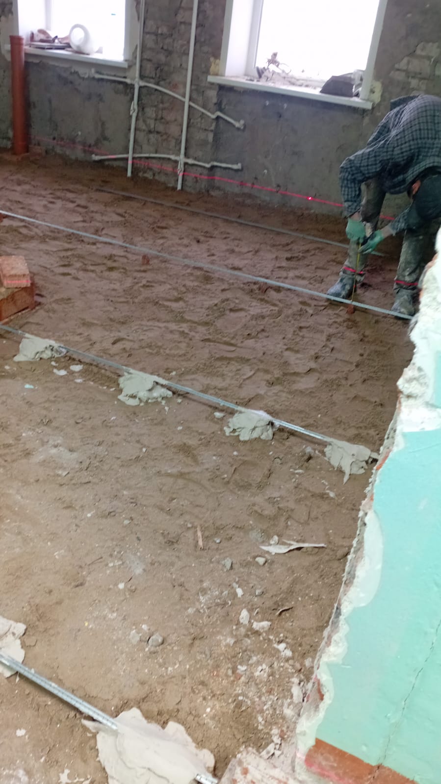 Подрядчики полностью сняли старую штукатурку, плитку со стен и напольное покрытие. Теперь они приступят к укладке труб, возведению перегородок и отделке помещений.