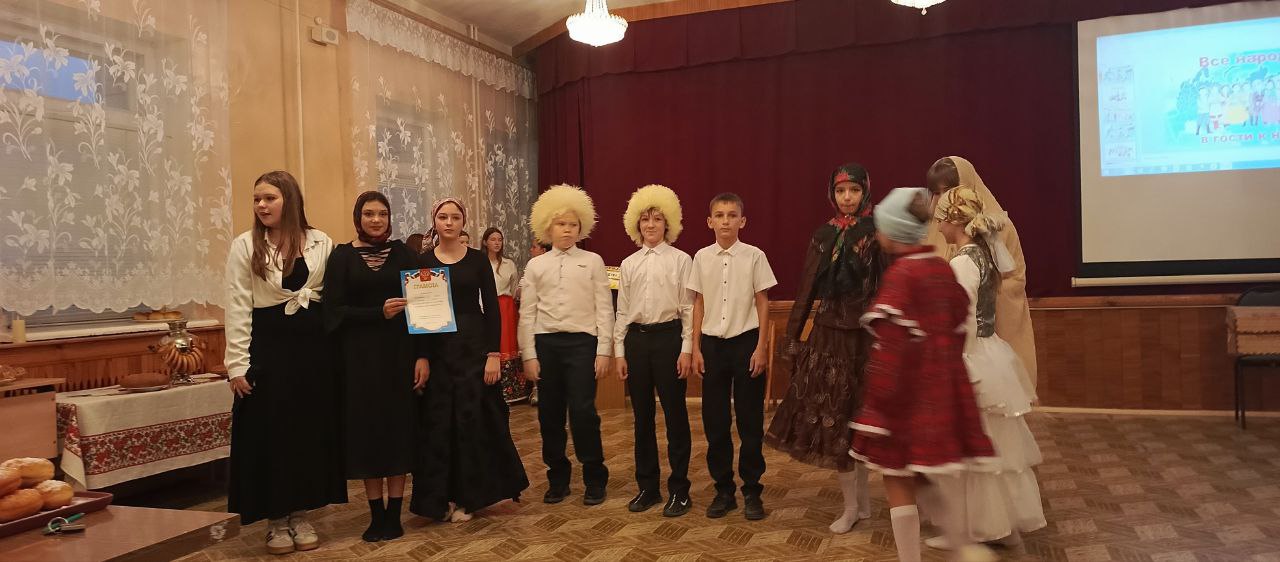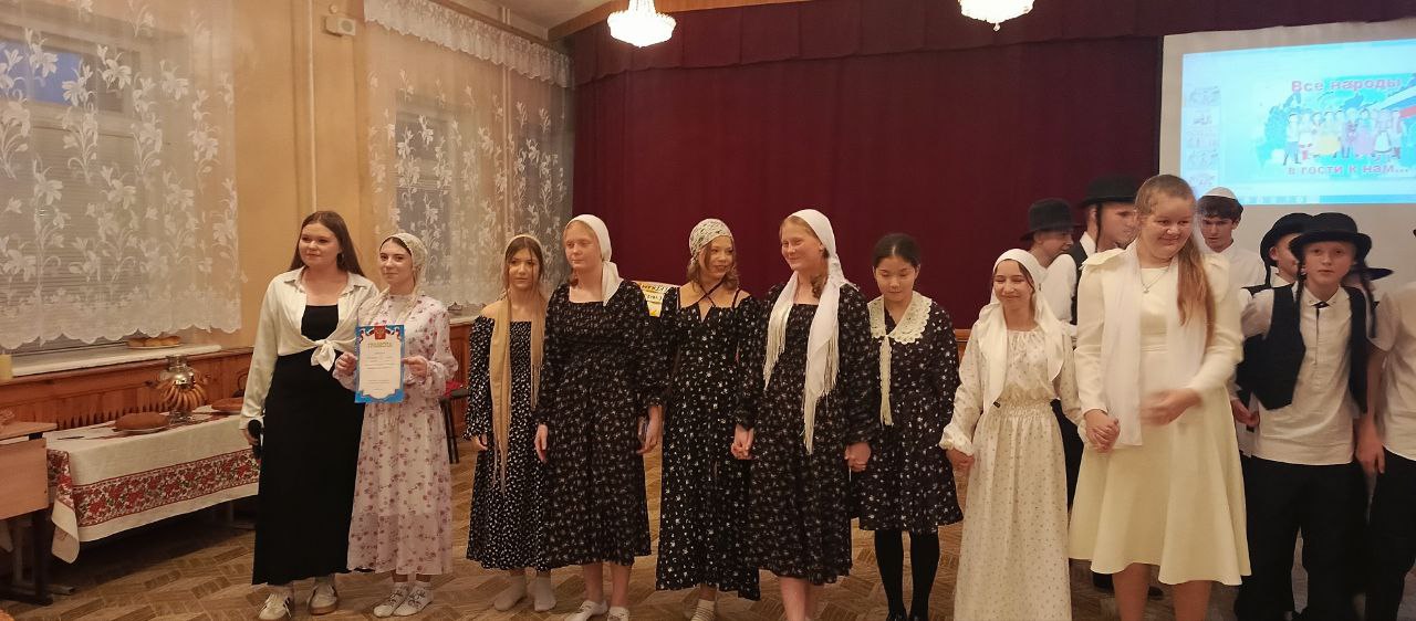 В фестивале под названием «Все народы в гости к нам!» приняли участие школьники 1-4 классов и 5 -9 классов. Каждый класс представлял свою национальность, приготовив песню, танец, игру и стол с национальными блюдами. Фестиваль собрал представителей таких народов как русские, мордва, евреи, якуты, казахи, дагестанцы и кубанские казаки. Учащиеся и классные руководители сумели подготовить интересную, многожанровую, просветительскую и эмоциональную программу. Каждое выступление зрители встречали и провожали бурными аплодисментами.