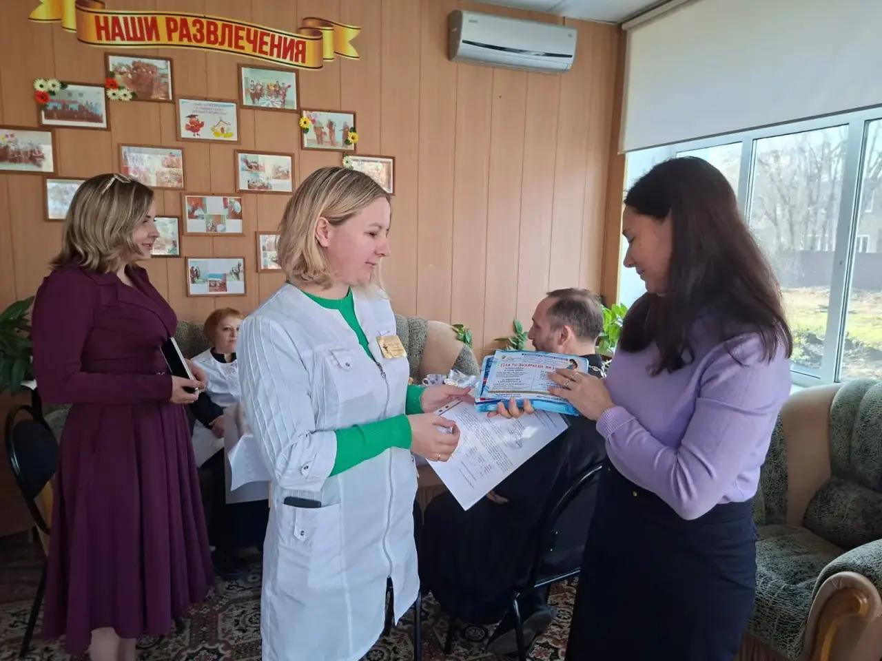 Три участницы получили продуктовые наборы, средства гигиены, бытовую химию и вещи из гуманитарного склада.