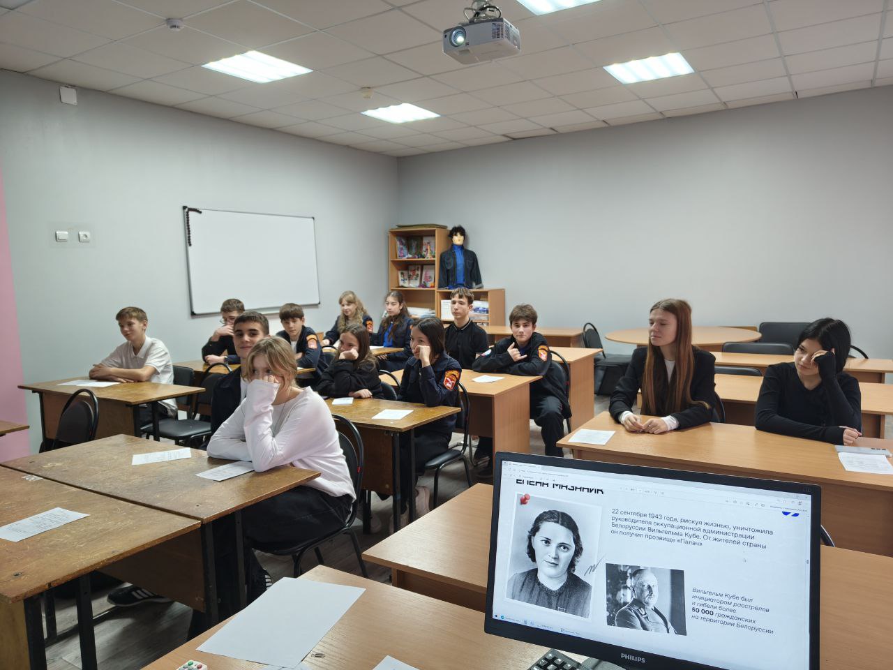 Советник директора по воспитанию И. В. Лифенко провела для ребят историческо-патриотический квест «Тайны давно минувших дней». Юноши и девушки не просто слушали рассказ о подвигах, а сами стали исследователями. Им предстояло расшифровать исторические документы, связать воедино события разных эпох.
