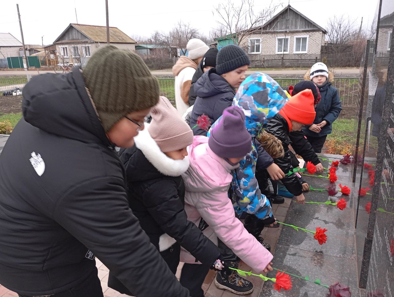 В День Неизвестного солдата в память о российских и советских воинах, погибших в боевых действиях на территории нашей страны или за её пределами, ребята из Долинской школы стали активными участниками Всероссийской акции "Красная гвоздика". Вместе с советником директора по воспитанию Н.А. Бочаровой и учителем начальных классов С.Г. Жумагалиевой школьники сделали цветы памяти и возложили их к мемориалу в центре села Долина.