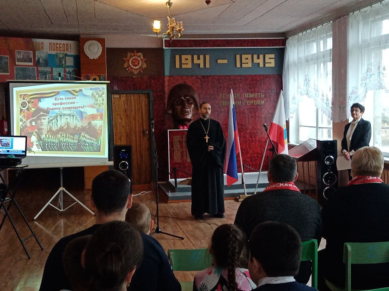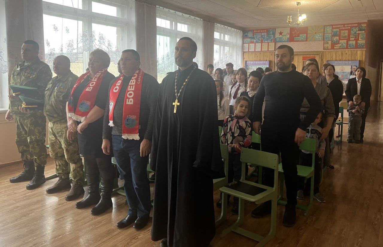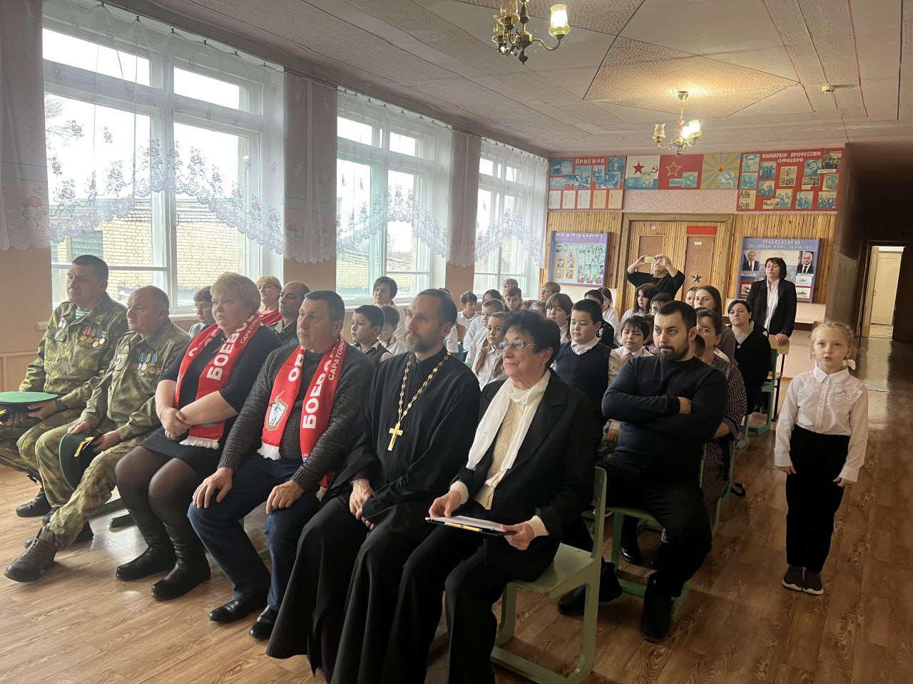 Тепло приветствовали школьники своего земляка Константина Лебедева, находящегося в краткосрочном отпуске. Искренние слова благодарности прозвучали в адрес матерей, воспитавших настоящих защитников Отечества.