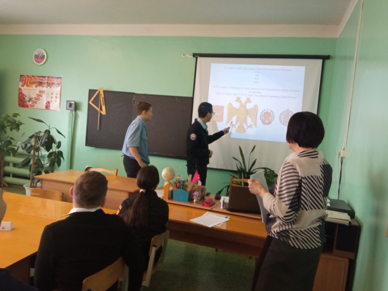 Накануне Дня Консультации РФ работники центральной детской библиотеки для учащихся 7в класса Мокроусской школы имени З.К. Пряхиной (кл. руководитель Краснова М.Ю) провели интеллектуально-познавательную викторину «Государственные символы России». В ходе мероприятия ребята вспомнили официальные и неофициальные символы России и где они встречаются в нашей жизни. Две команды: «Россияне» и «Патриот» прошли 3 тура: «Герб», «Флаг», «Гимн». Школьники расширили свои знания о главных официальных символах, узнали, как они появились, зачем нужны, как менялись в течение многих веков. С небольшим отрывом победила команда «Патриот». Обе команды награждены дипломами.