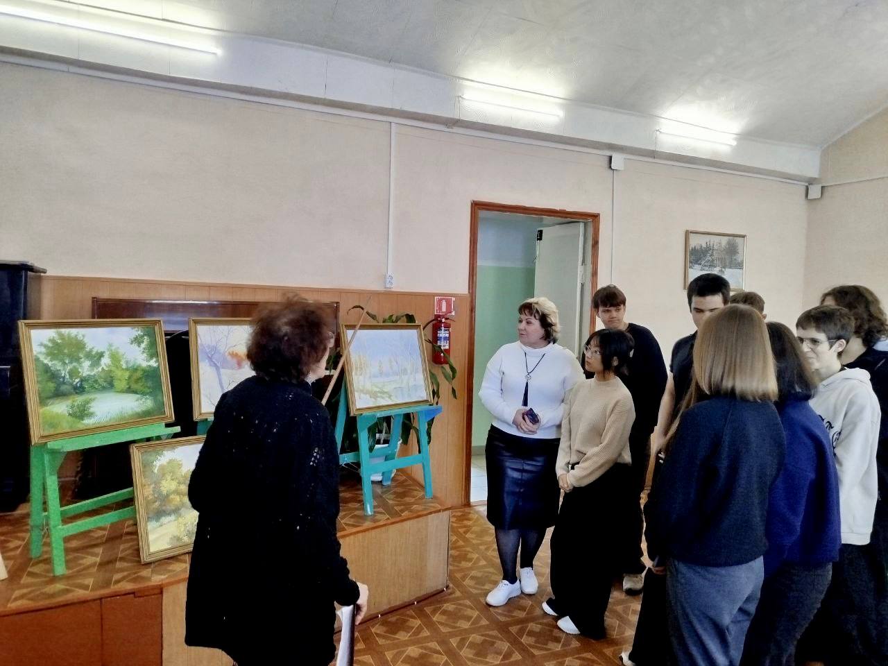 Познакомиться с работами художника уже успели ученики Мокроусской школы №1 им. З.К. Пряхиной под руководством педагога Е.С. Леоновой, а также воспитанники самой школы искусств и жители посёлка.