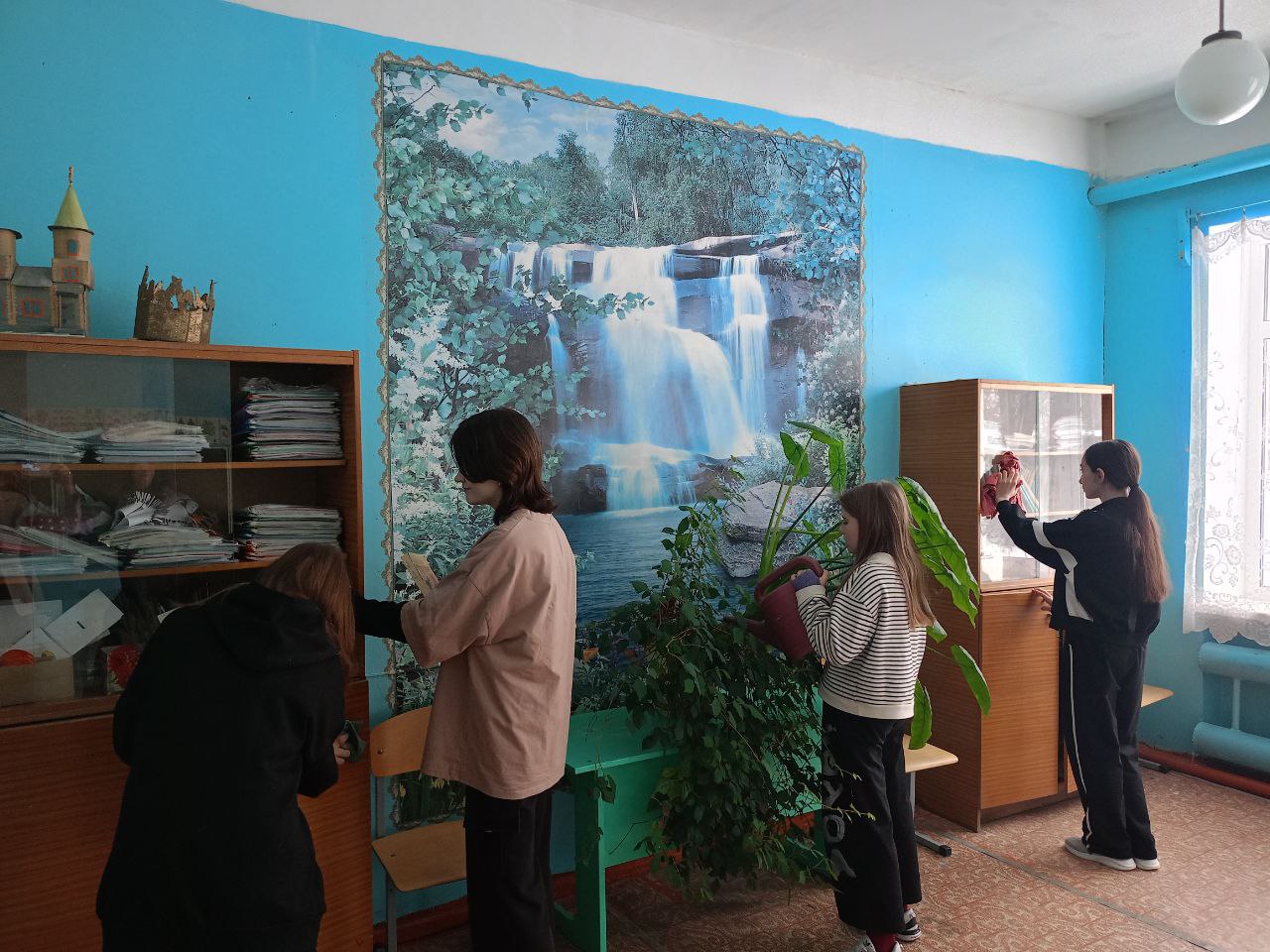 В завершающий учебный день второй четверти ученики Калдинской школы организовали генеральную уборку в кабинетах и школьном коридоре. Эта традиция поддерживается постоянно. Конечно, каждый день есть дежурные, есть хранители чистоты, но перед каникулами ребята делают уборку всей школы.