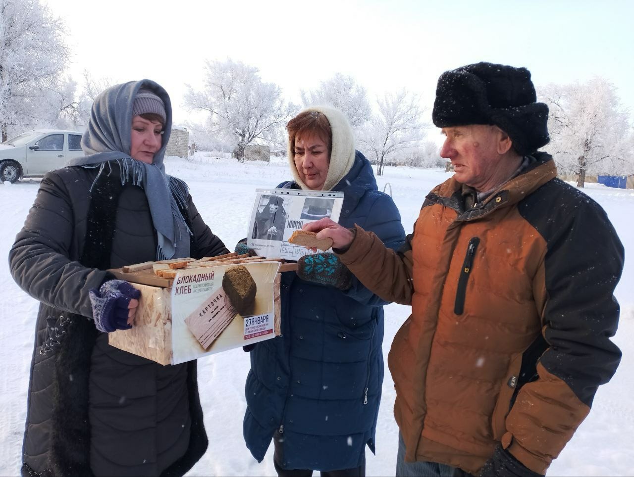 В с. Спартак работники культуры провели уличную акцию «Блокадный хлеб». Ключевым символом акции является кусочек хлеба весом в 125 граммов - именно такая минимальная норма выдачи хлеба на человека в день была установлена в самый трудный период блокады. жители села бережно брали кусочек хлеба, вспоминали своих родителей, дедов, прошедших горнило Великой Отечественной войны.