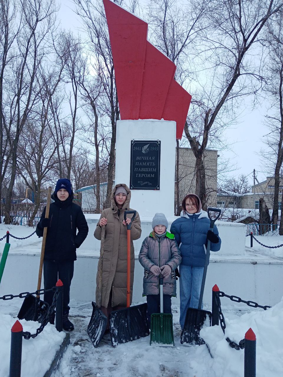 15 февраля, в День памяти о россиянах, исполнявших служебный долг за пределами Отечества, отряд "Хранителей истории" 7 класса школы поселка Солнечный нес трудовую вахту. Ребята дружно взялись за лопаты, чтобы убрать выпавший снег у памятника воинам-землякам, погибшим в годы Великой Отечественной войны. Юные патриоты расчистили широкий подход, убрали снег с дорожки, которая ведет к памятнику, территорию вокруг, освободили от снега сам памятник. Также очистили от снега дорожки, ведущие к памятным мемориальным доскам землякам, погибшим в ходе СВО.
