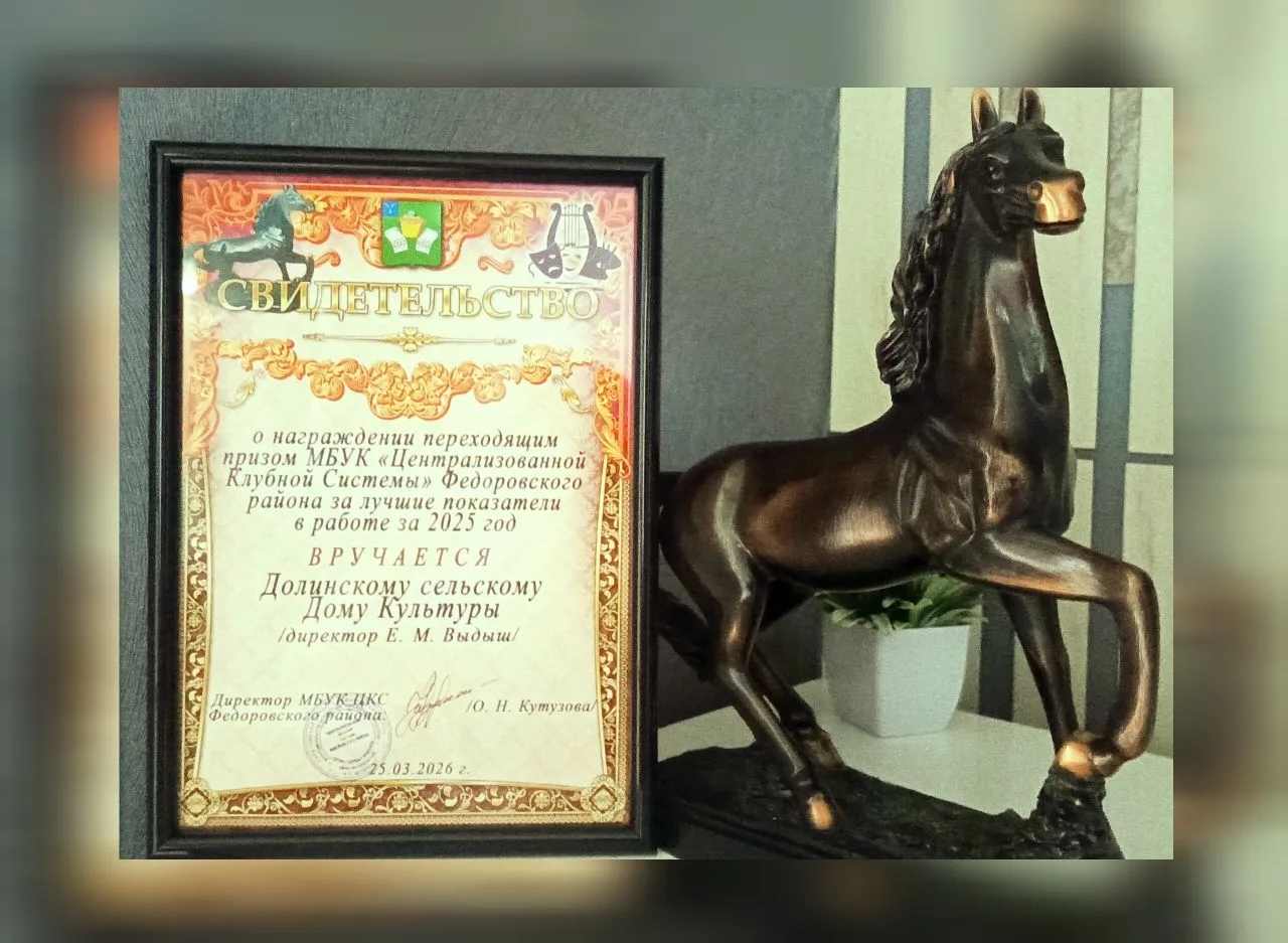 По итогам работы за 2025 год переходящий приз вручен Долинскому сельскому Дому культуры! Это заслуженная награда для коллектива, который доказывает: творчество, труд и любовь к своему делу приводят к самым высоким результатам.